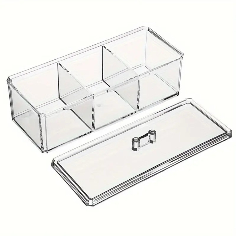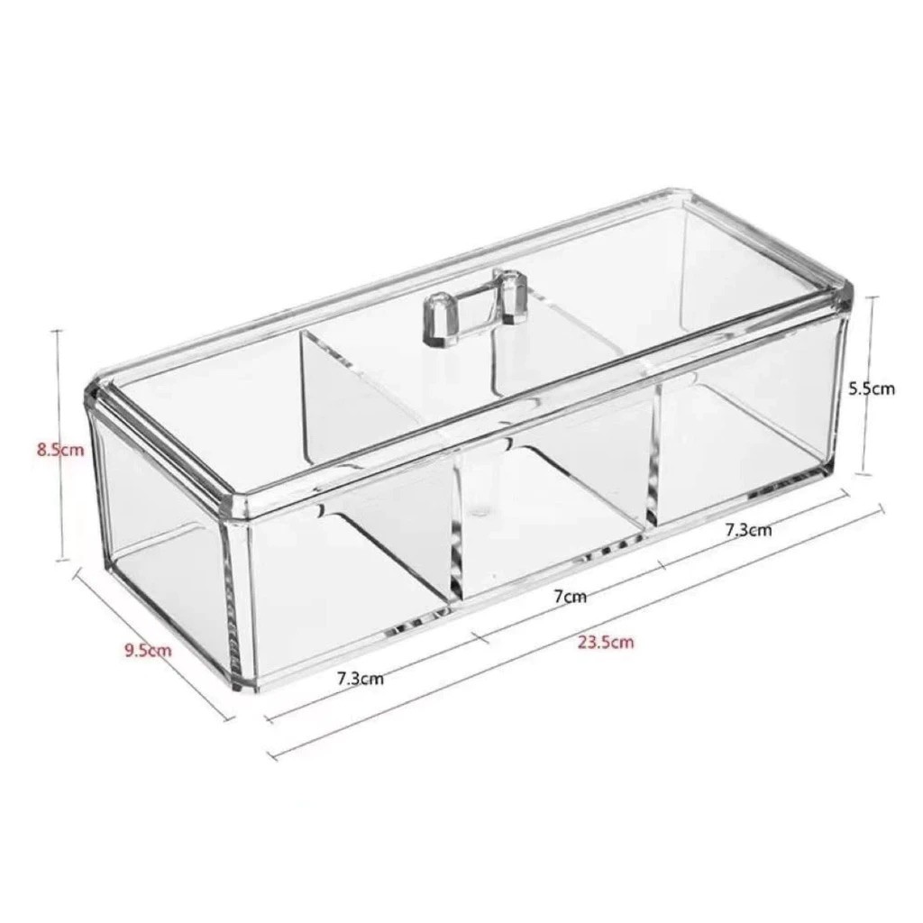 Caixa em acrílico organizador grande com 3 divisórias + tampa ABCSHOP