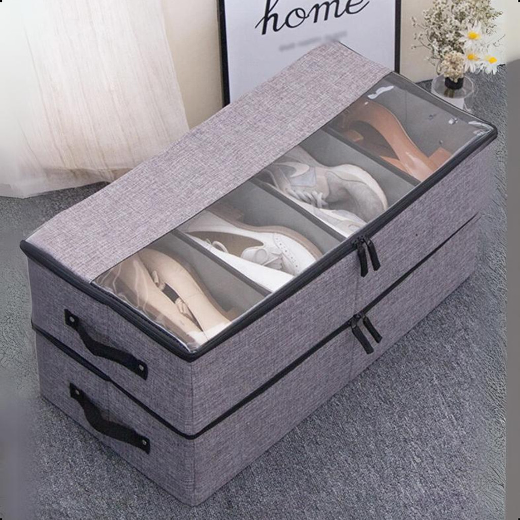 Caixa organizadora sob a cama com 4 tampas e divisórias ajustáveis para sapatos e roupas