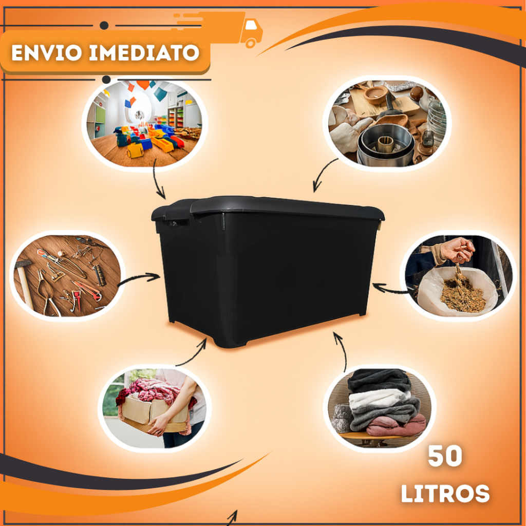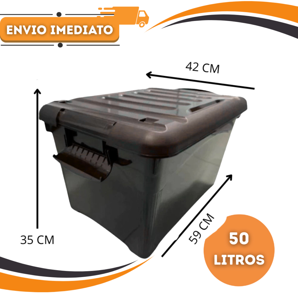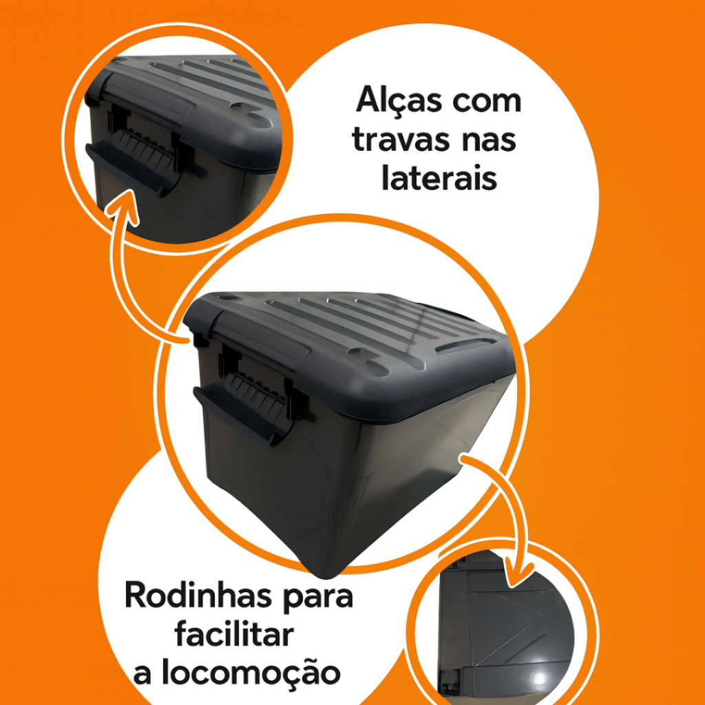 Caixas Organizadora Grande Com Tampa, Rodinhas E Trava 65 Litros – Organização e Praticidade