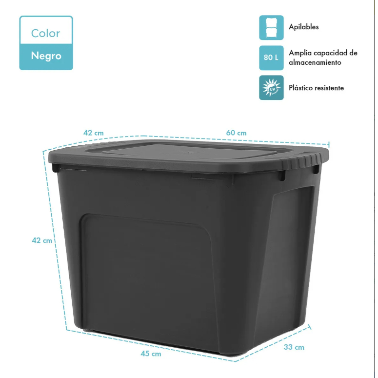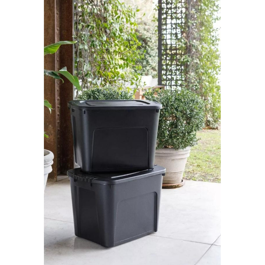 Caixas Organizadoras Eco Box 80 Litros Preta Com Tampa Empilhável