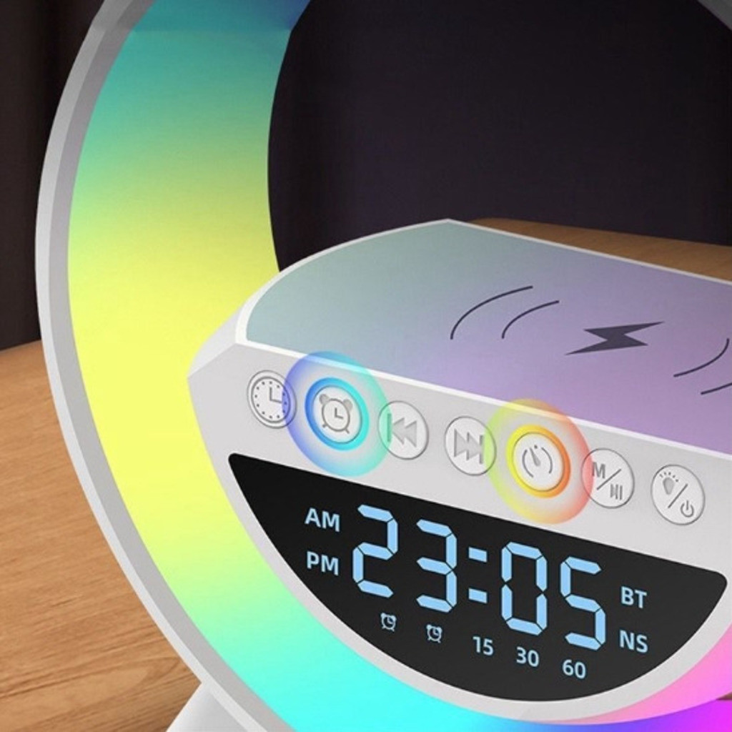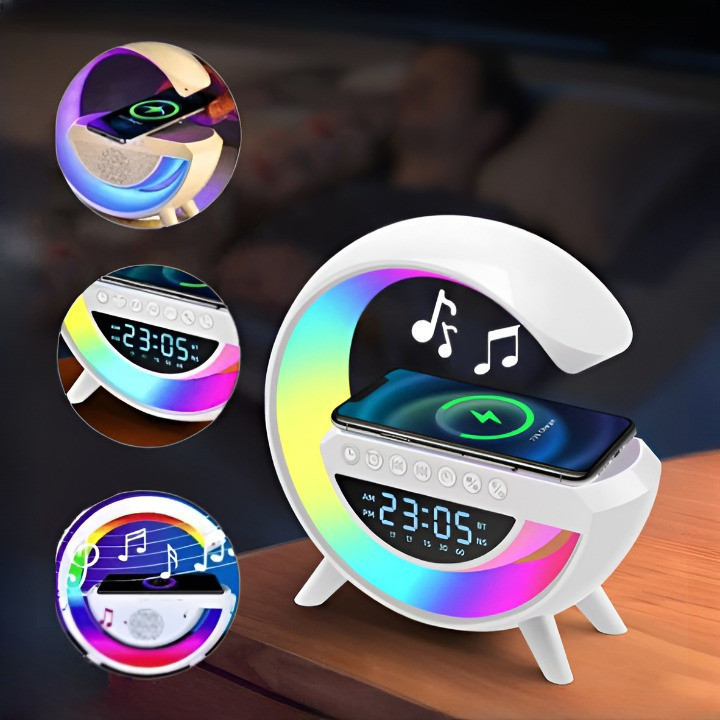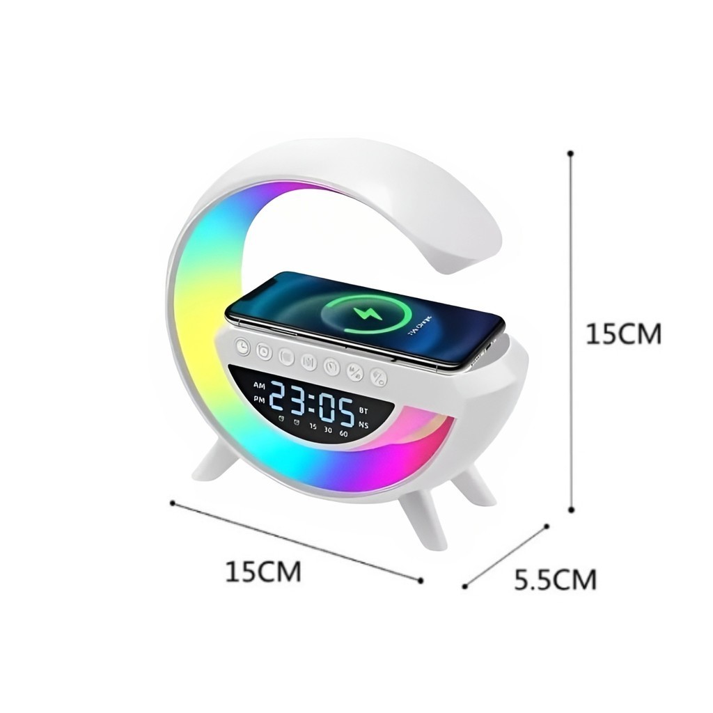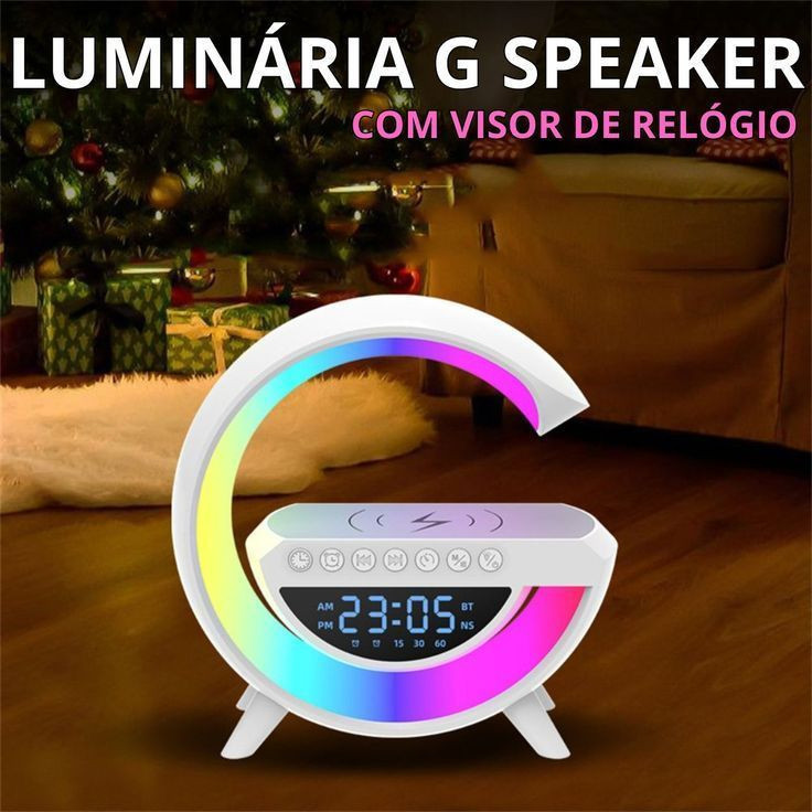 Caixinha de Som G-Speaker Branca Bluetooth com Relógio Luminária LED DAFUSHOP Official