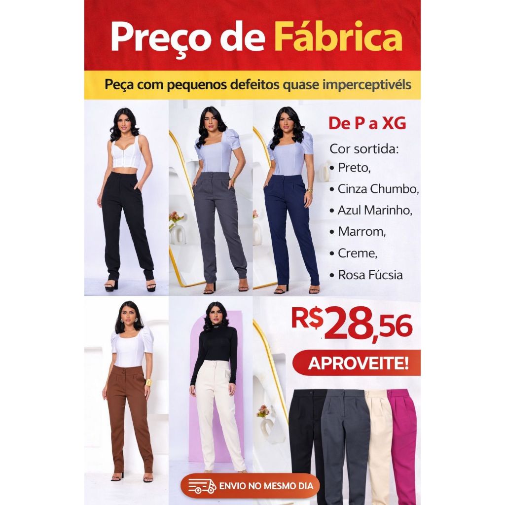 Calça Alfaiataria Feminina P ao Plus Size