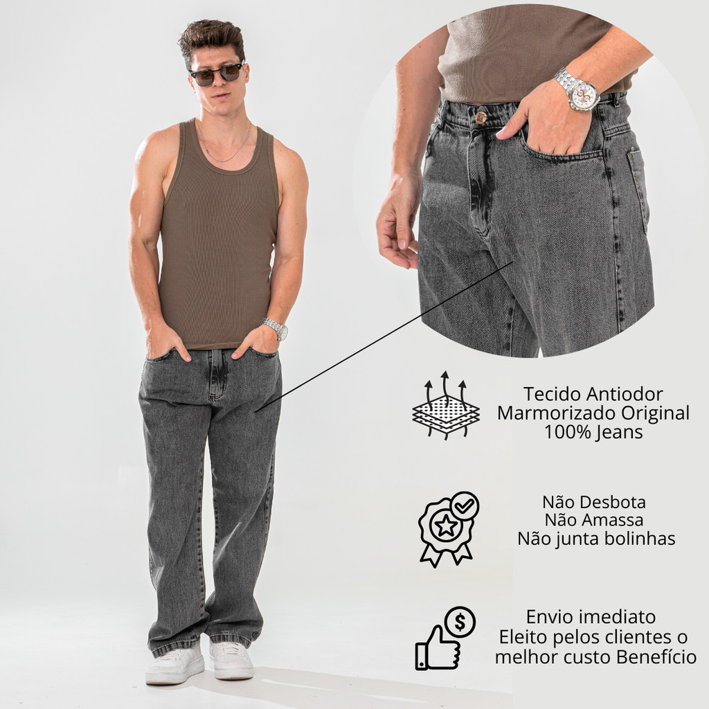 Calça Baggy Balão Jeans Grafite Marmorizada Streetwear Larga Skatista 36 ao 48