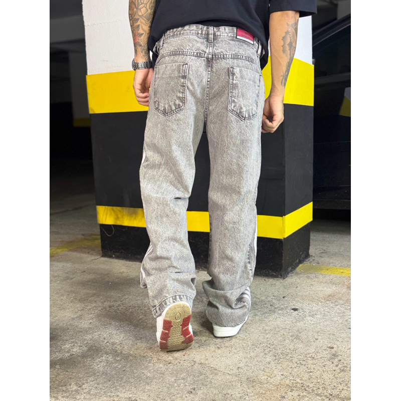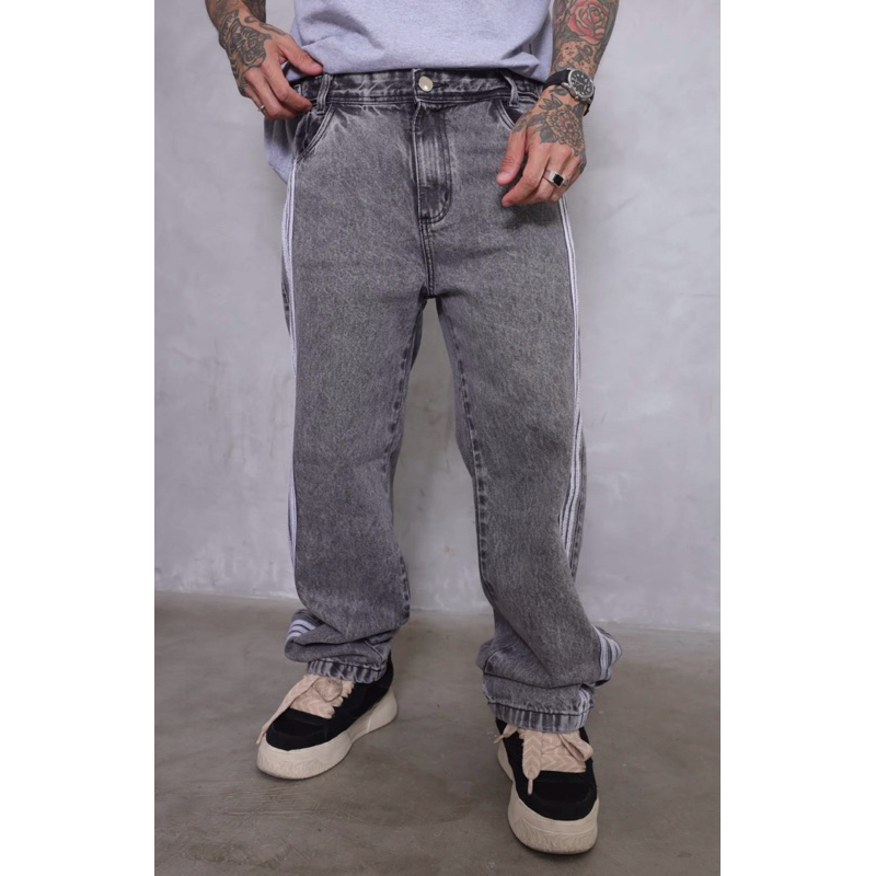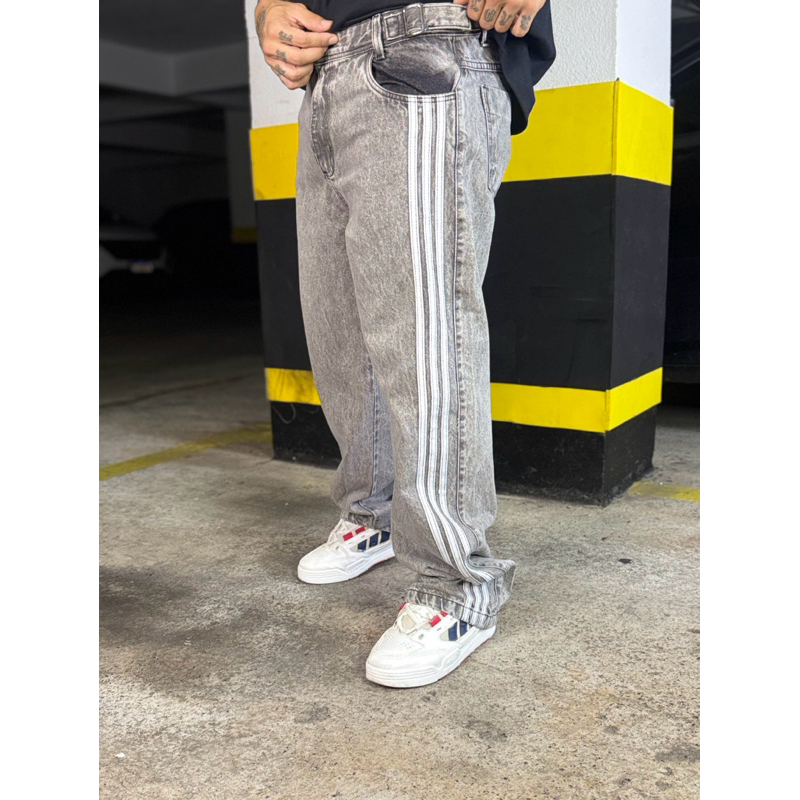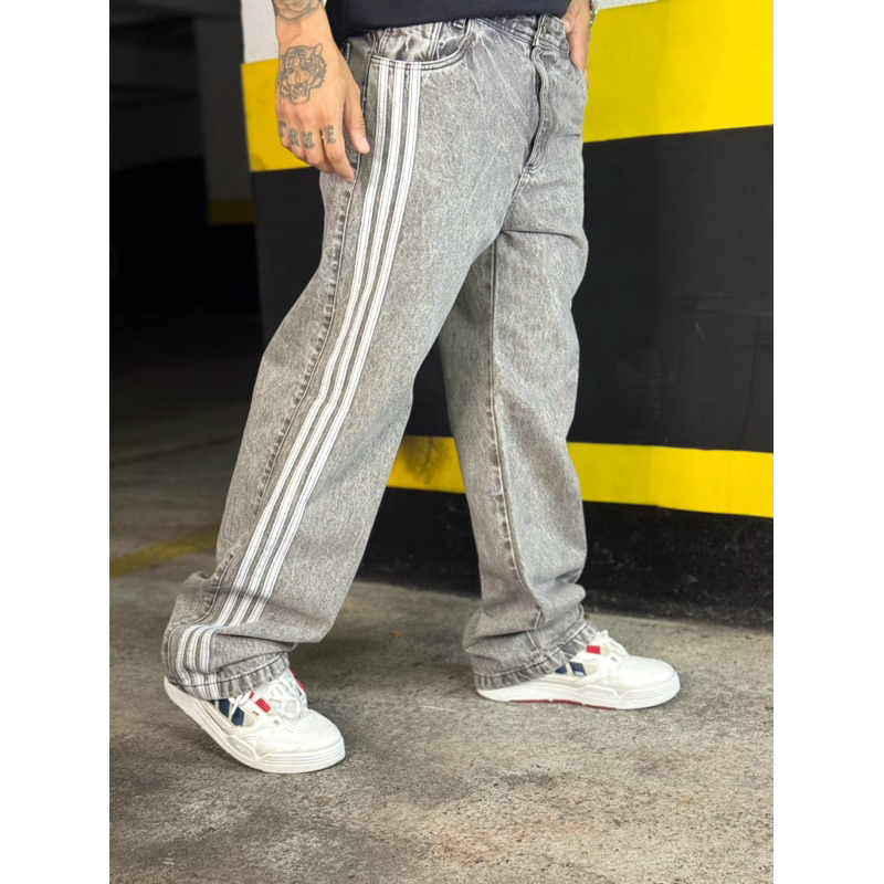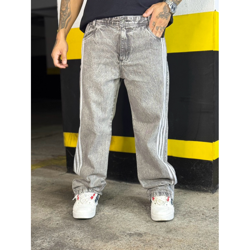 Calça Baggy Estonada com Listra Lateral Casual Street
