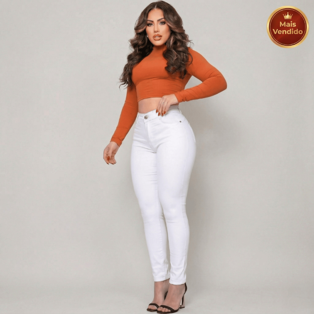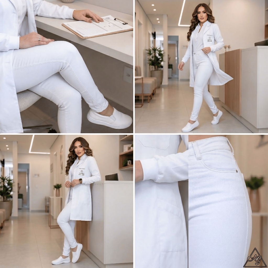 Calça Branca Feminina Skinny Cintura Alta com Lycra Não Transparente Enfermagem Trabalho Moda 2026