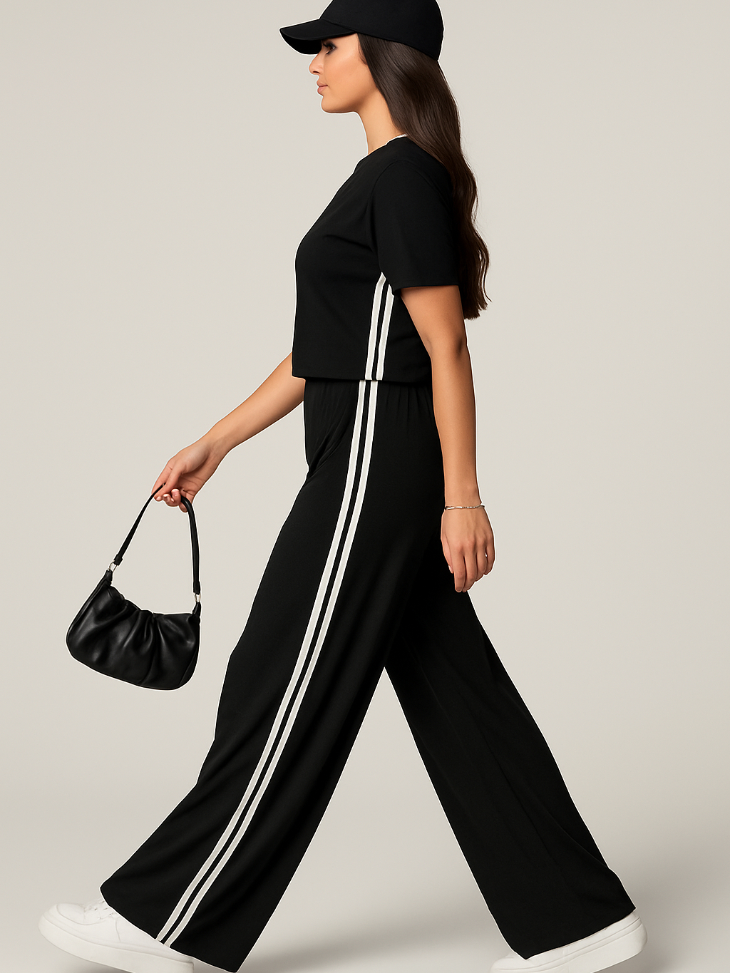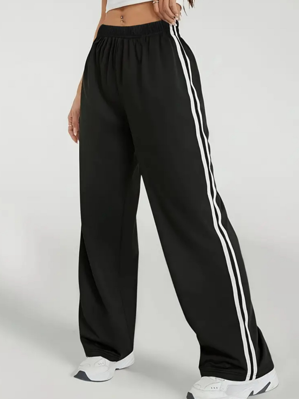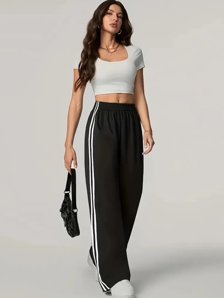 Calça Feminina Malha Confortável com Listras Laterais Estilosa Moda Gringa Tendência