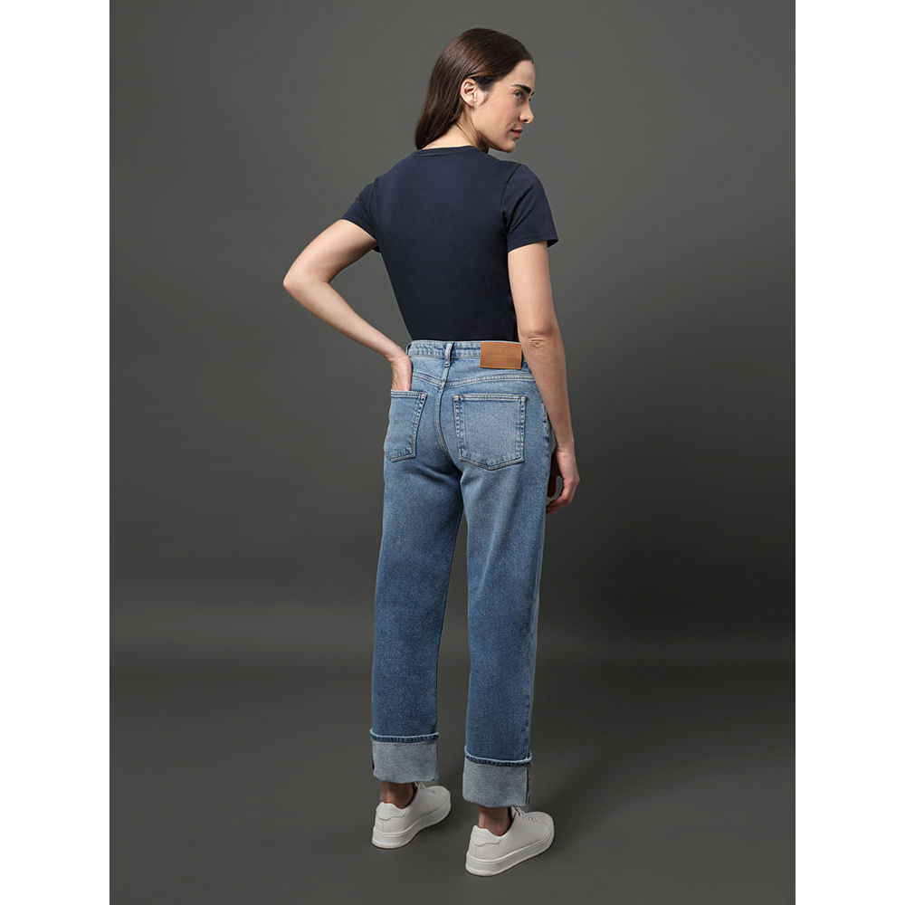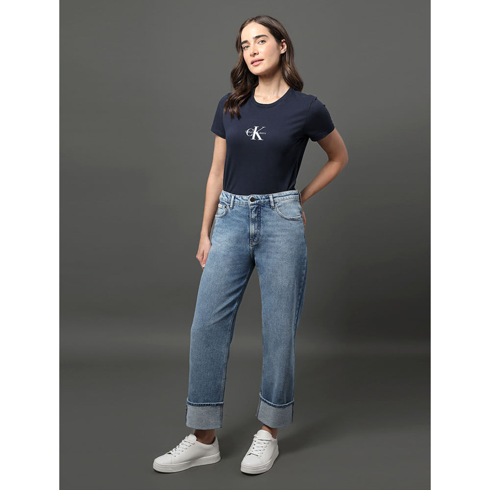 Calça Jeans Feminina Straight Barras Dobradas Calvin Klein Jeans - Azul Claro