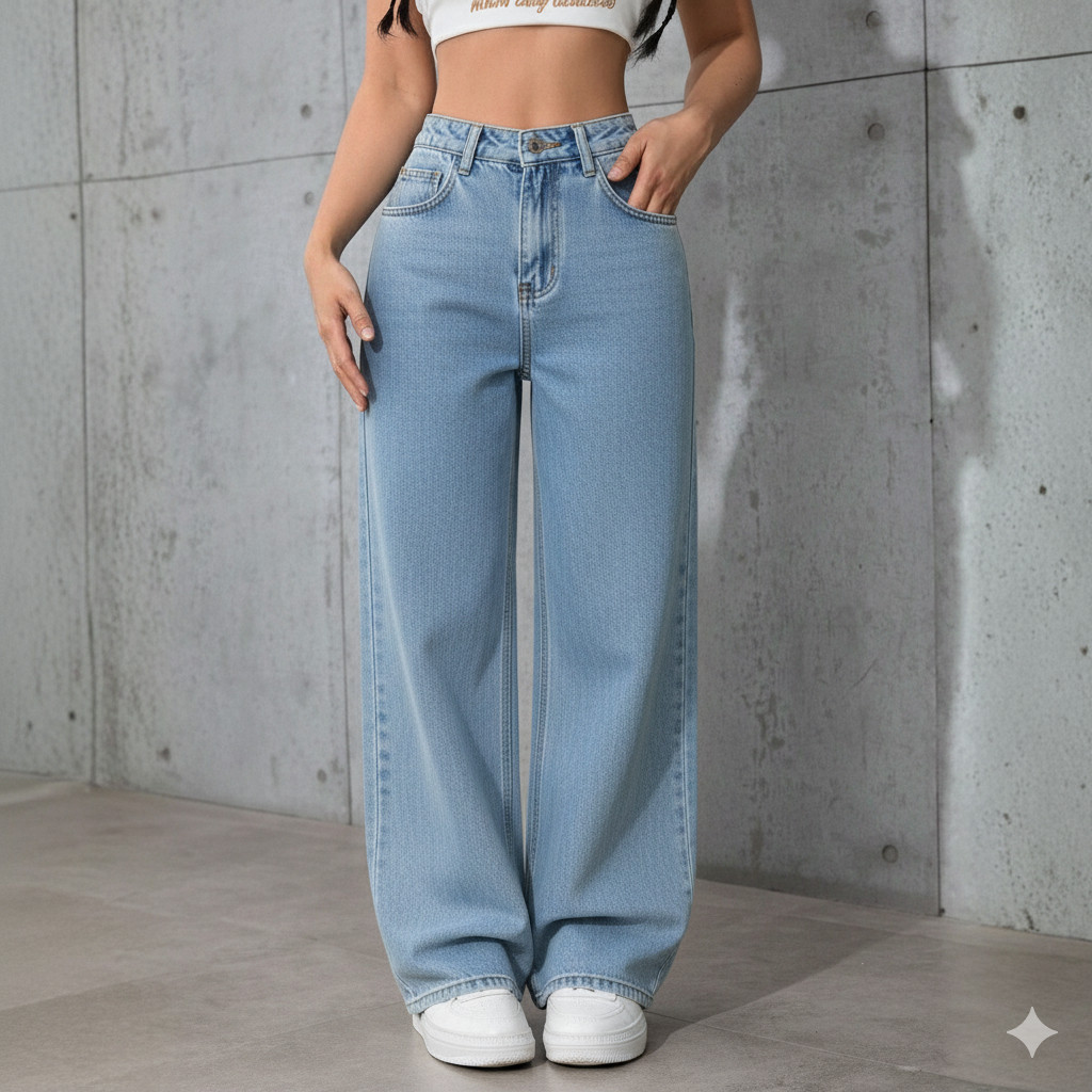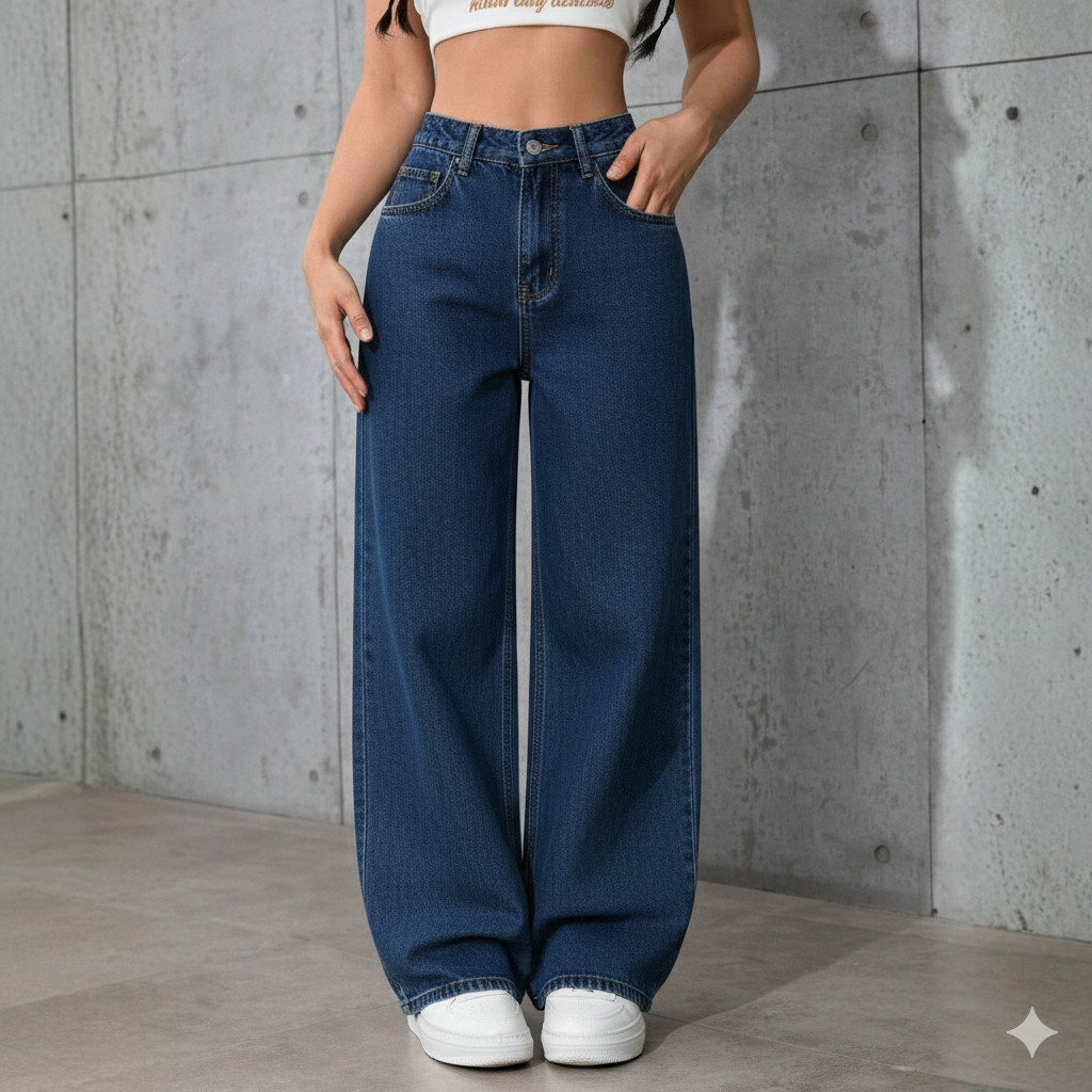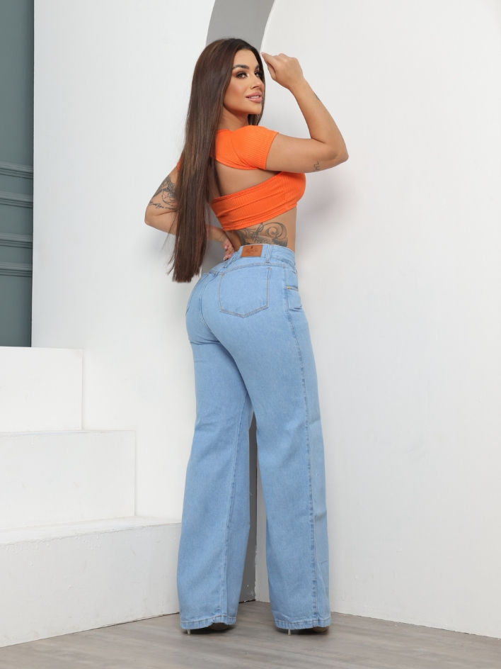 Calça Jeans Feminina Wide Leg Premium Cintura Alta 100% Algodão