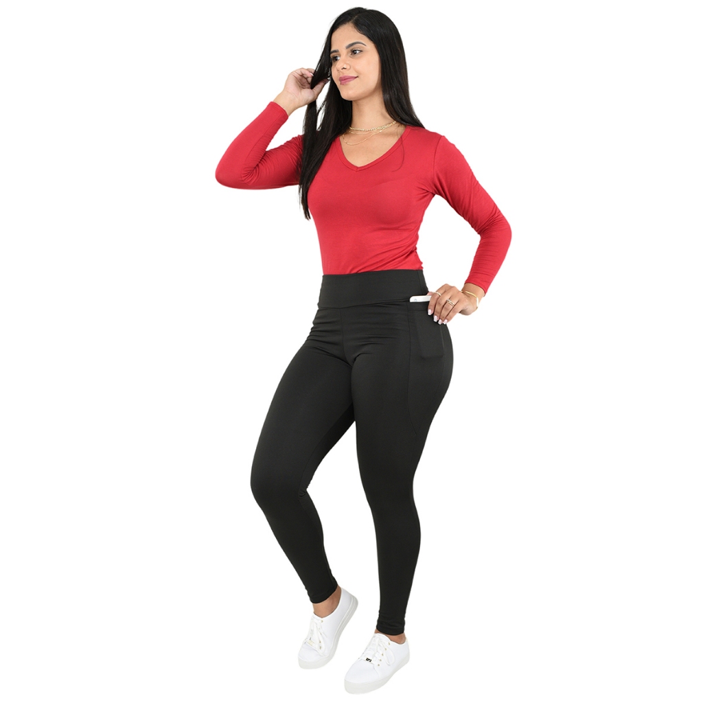 Calça Legging Flanelada Feminina Peluciada Térmica Cintura Alta Suplex Com Bolso