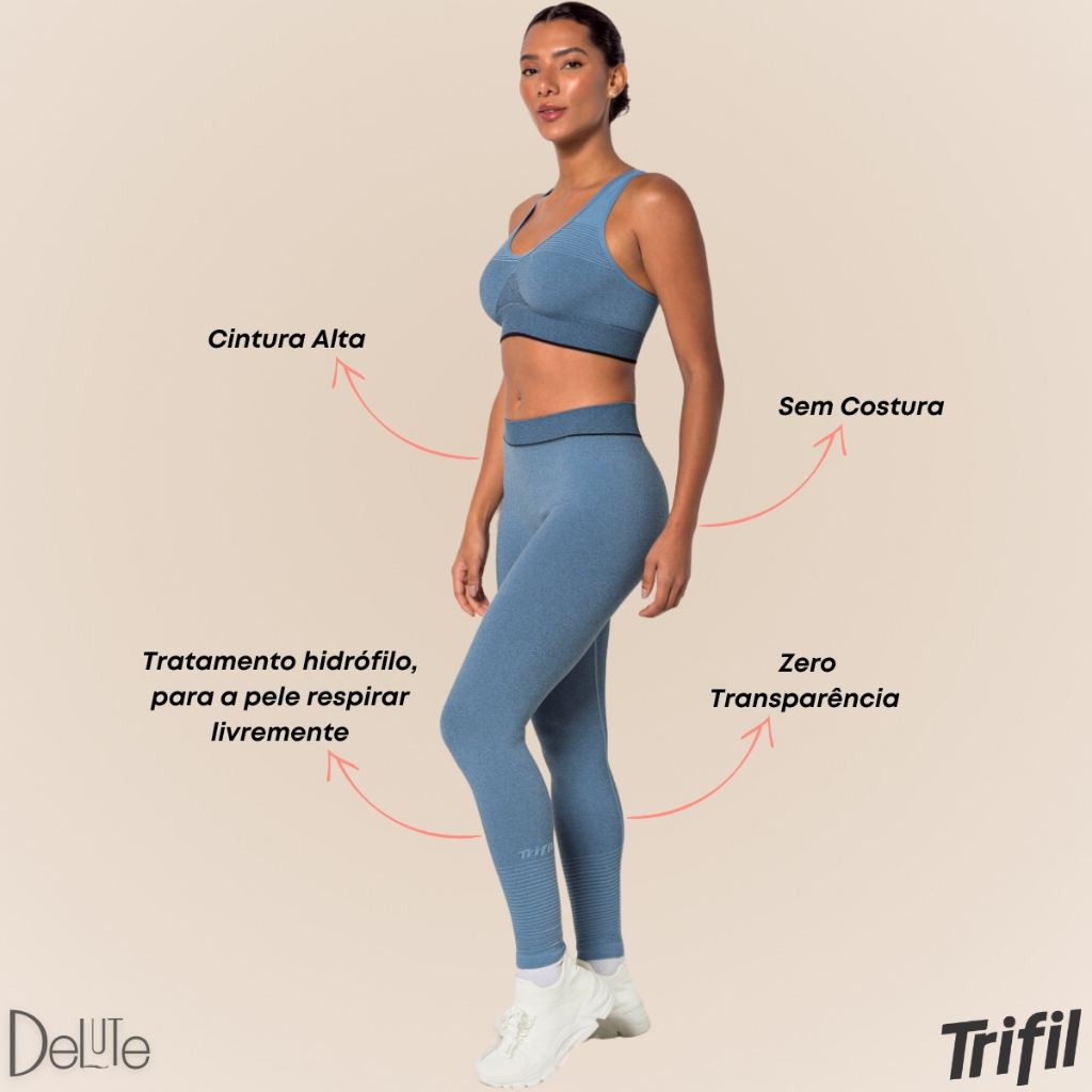 Calça Legging Trifil Feminina Sem Costura Resistente Cintura Alta Fitness Alta Performance Básica