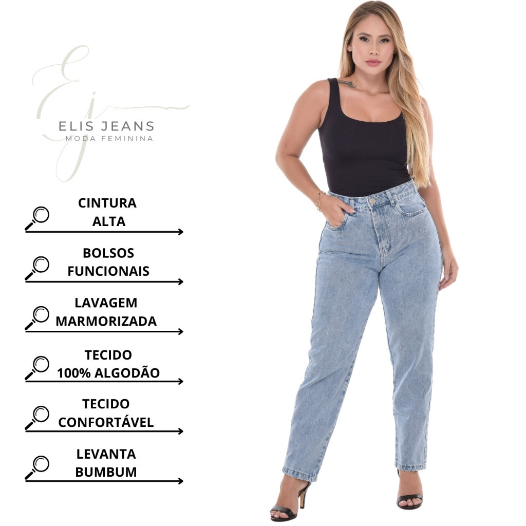 Calça Mom Jeans Feminina Cintura Alta