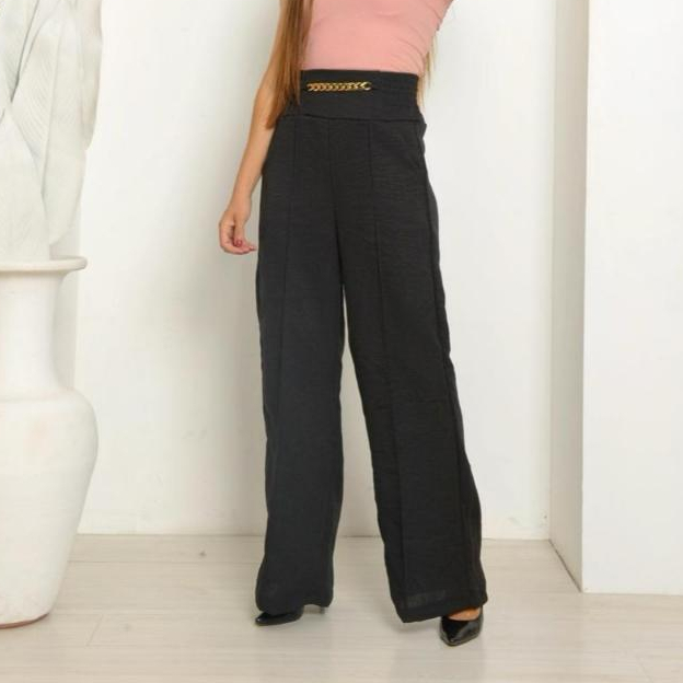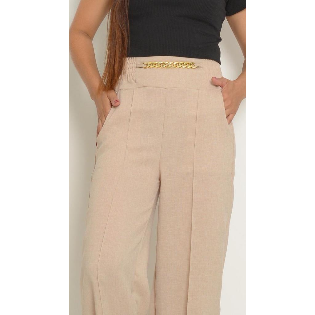 Calça Pantalona De Linho Com Cinto Fake e Bolsos Do P ao GG
