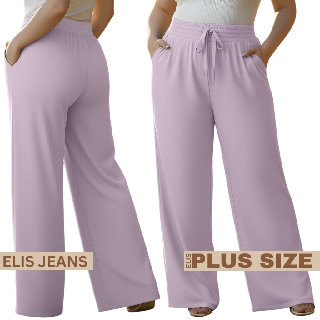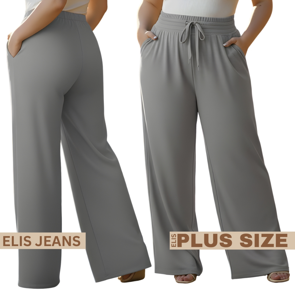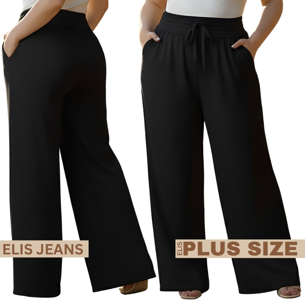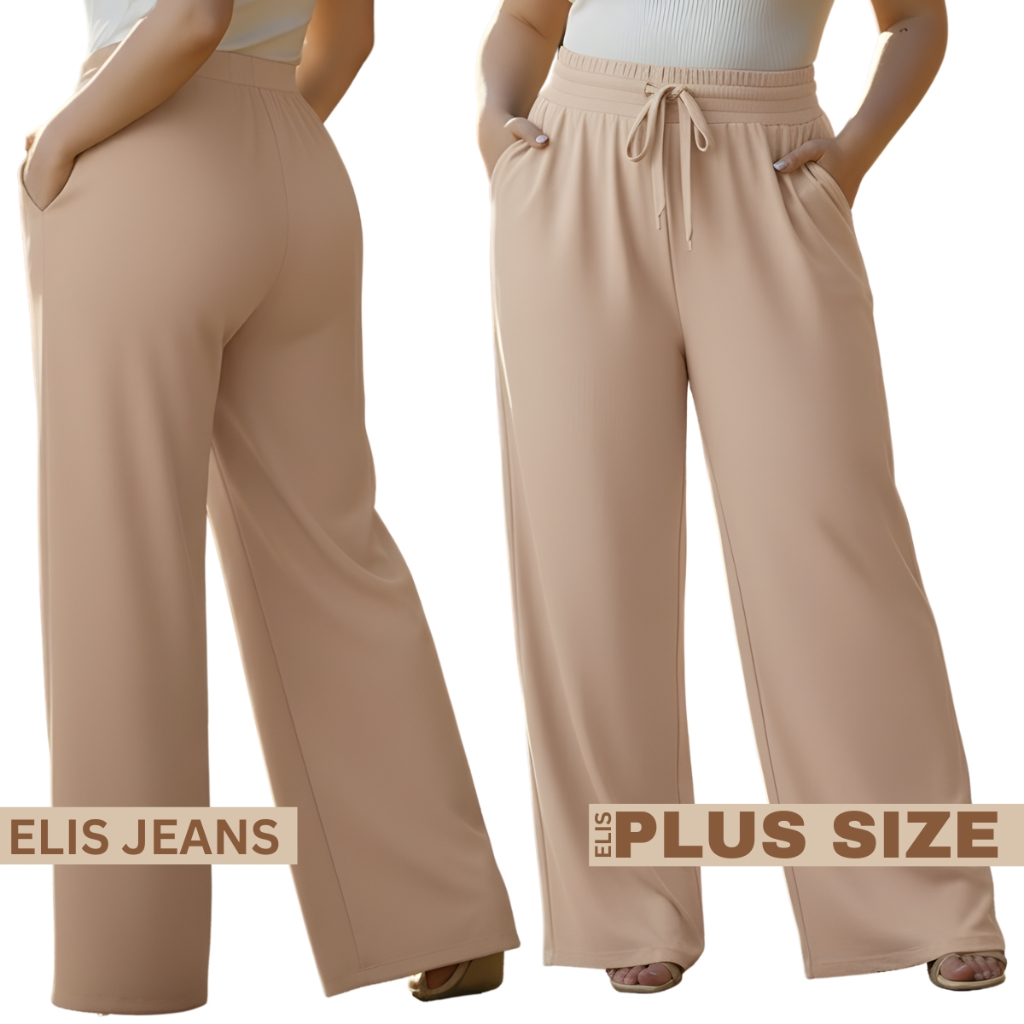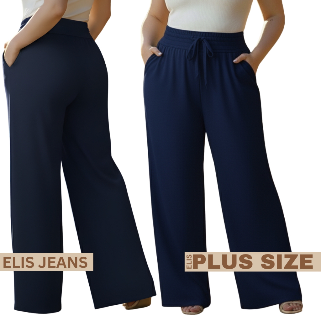 Calça Pantalona Plus Size Feminina Com Bolso Elástico Na Cintura Tecido Duna Cintura Alta