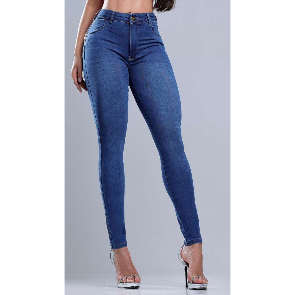 Calça jeans feminina skinny Ri9 com zíper fake nos bolsos