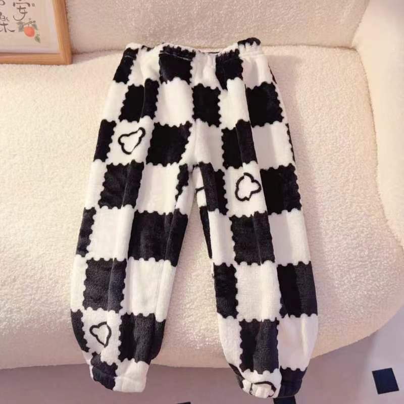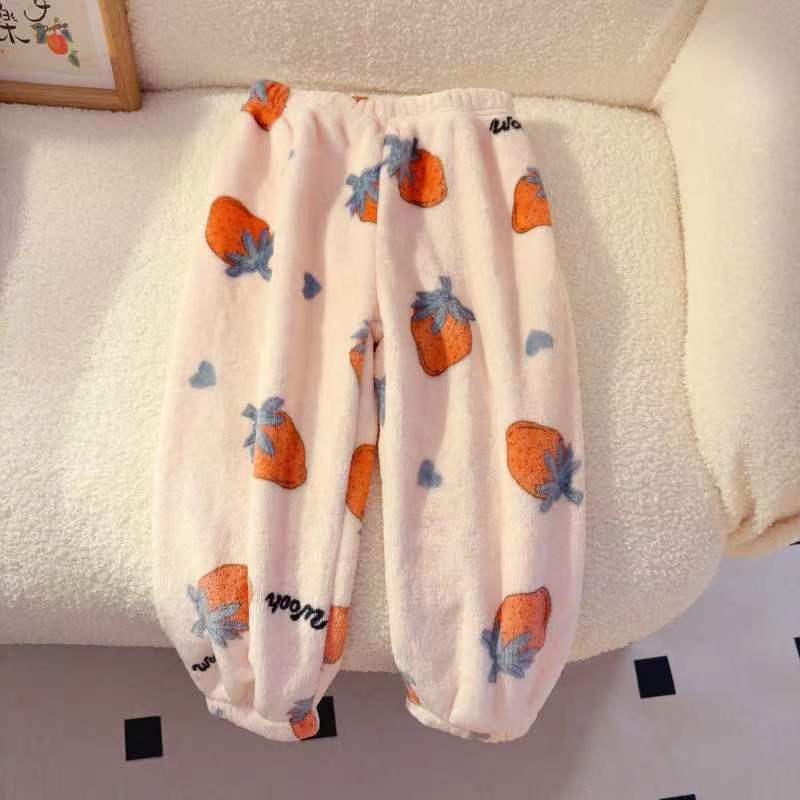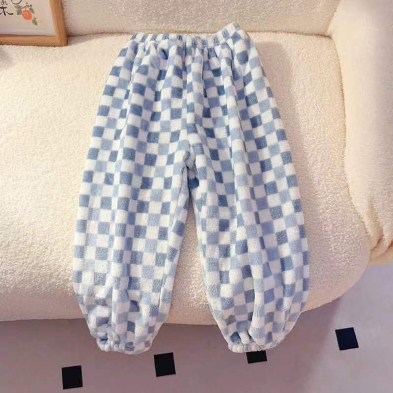Calças de casa das crianças Coral velo flanela outono inverno quente médio grande calças de pijama das crianças meninos