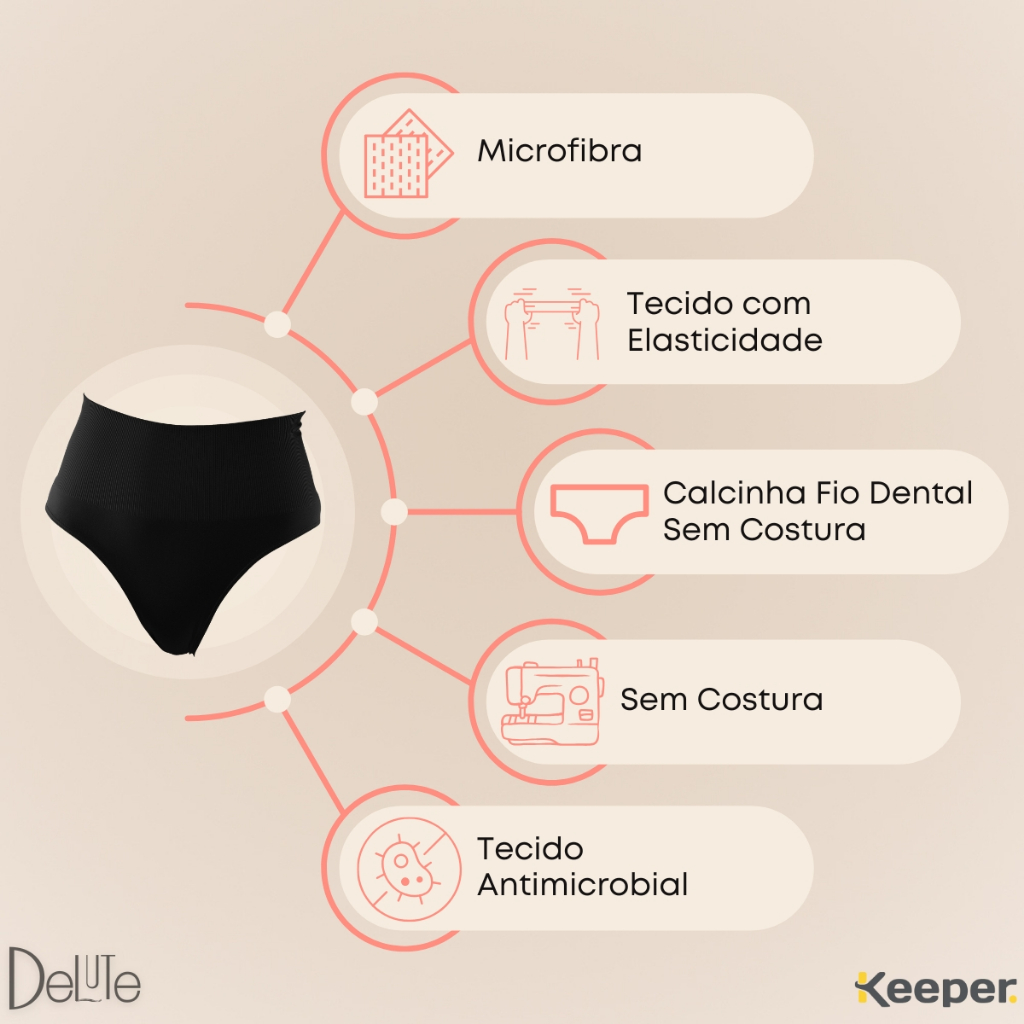 Calcinha Cintura Alta Modeladora Sem Costura Modelo Fio Dental Média Compressão Modela Reduz Adulto