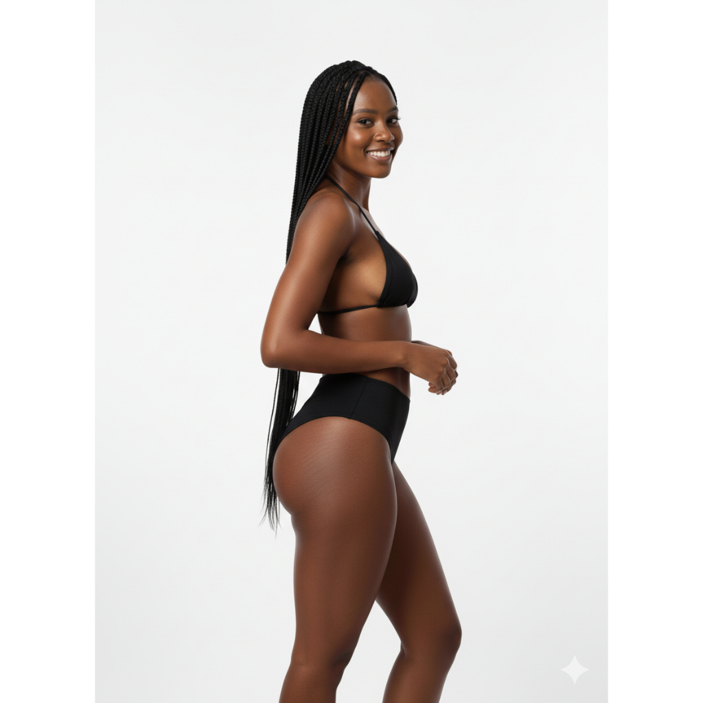 Calcinha de biquíni Hot Pants PRETA, Cintura Alta, Chapa Barriga, Fio Dental