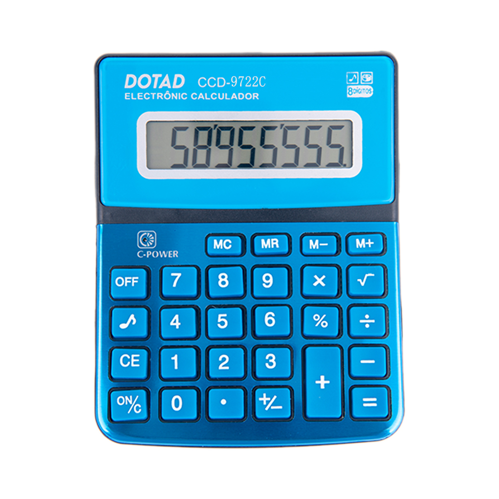 Calculadora de Mesa 8 Dígitos Grande com Painel de Metal, para Estudante e Escritório Azul Vermelho