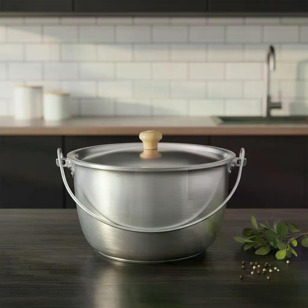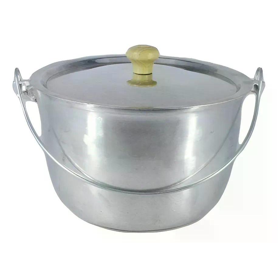 Caldeirão Alumínio Fundido Polido Alça Vergalhão e Pomel de Madeira 16cm 1,7L