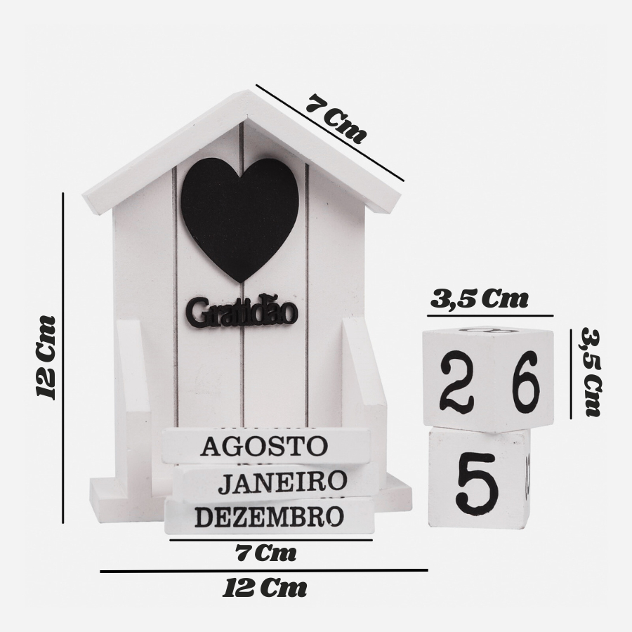 Calendário Gratidão 7x12Cm De Blocos Em Formato De Casinha Elegante E Rústico Para Todos Os Anos