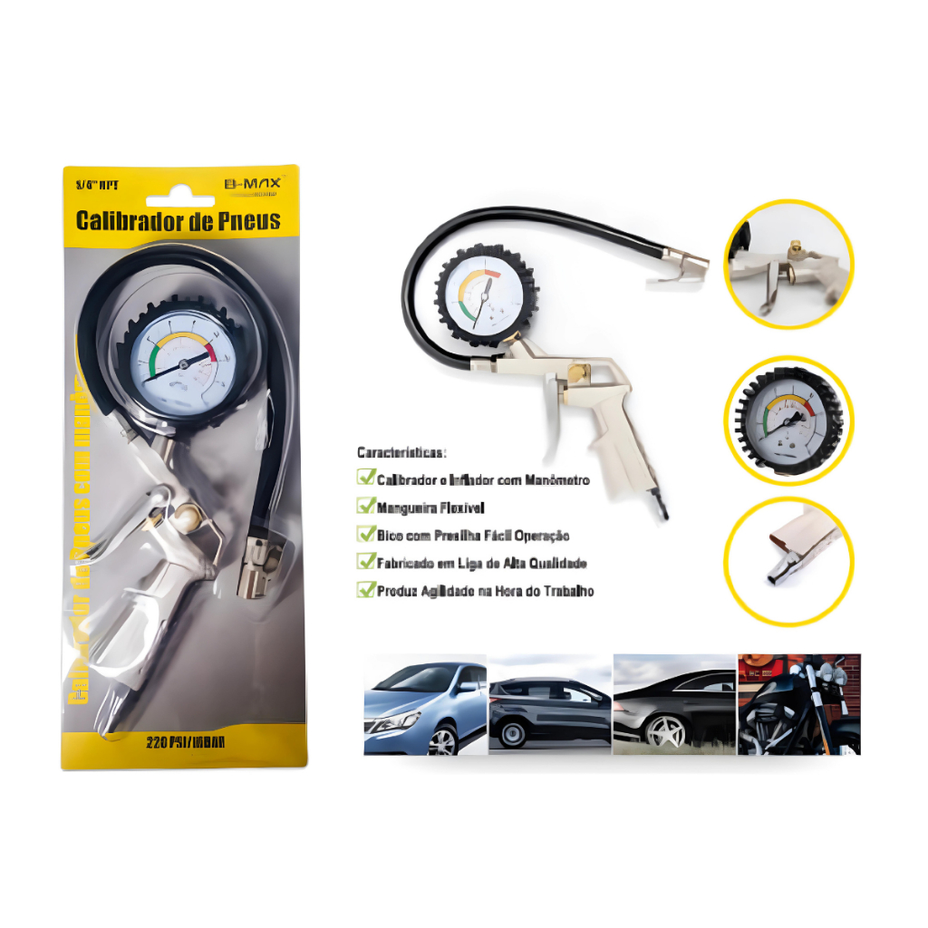 Calibrador E Inflador De Pneus Com Manômetro 220 PSI/16BAR