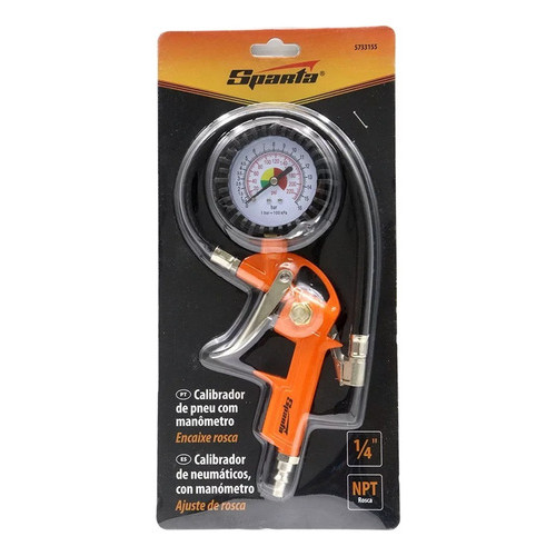 Calibrador de Pneu com Manômetro Rosca 1/4'' Carro Moto Bike Bicicleta Profissional Manual SPARTA