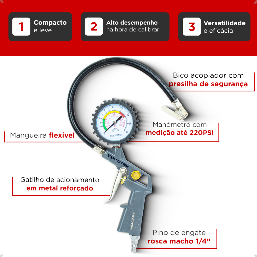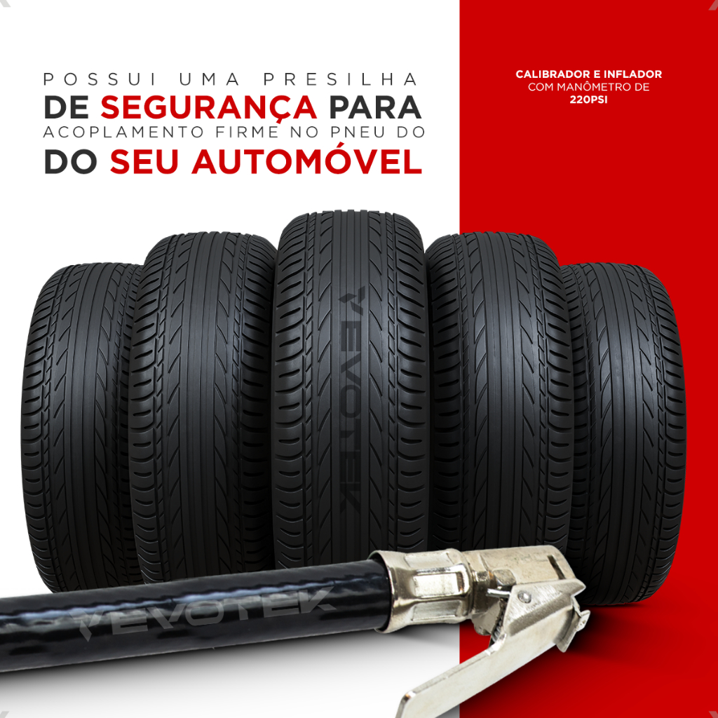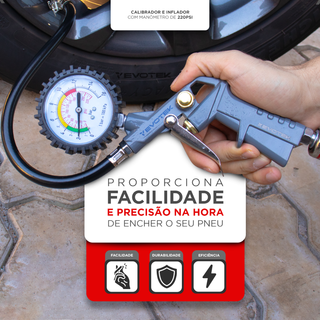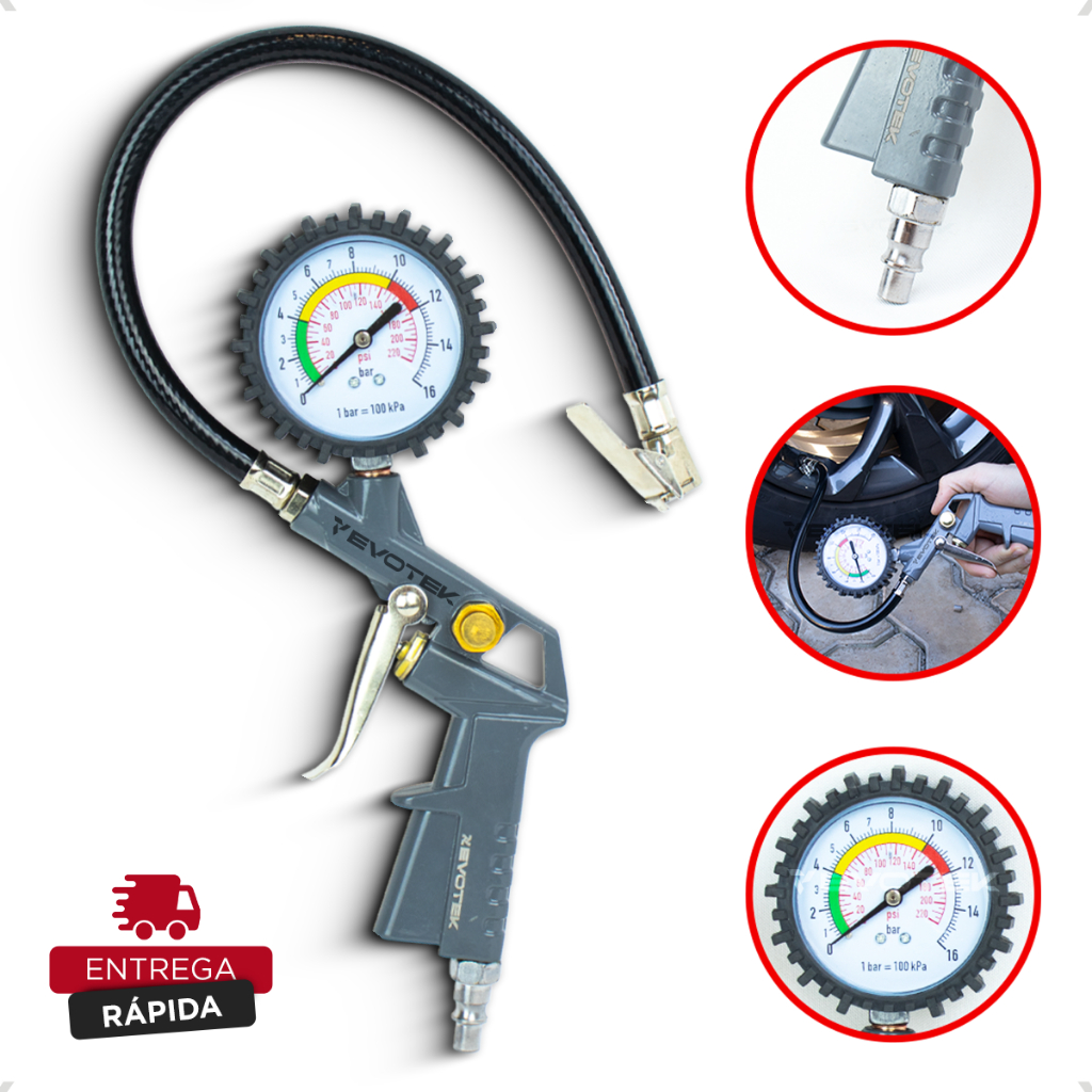 Calibrador e Inflador de Pneus Com Manômetro 220 Libras Profissional