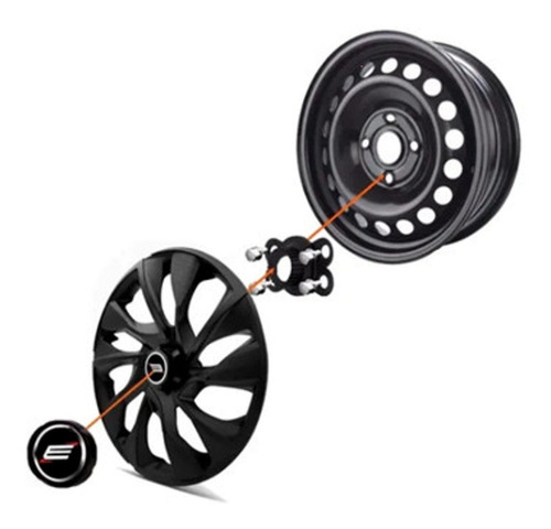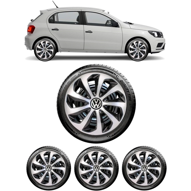 Calota Esportiva Aro 14 Prata/preto Vw VW Volkswagen Gol G1 G2 G3 G4 G5 G6 G7 Up Fox Voyage Parati Saveiro Bora Polo