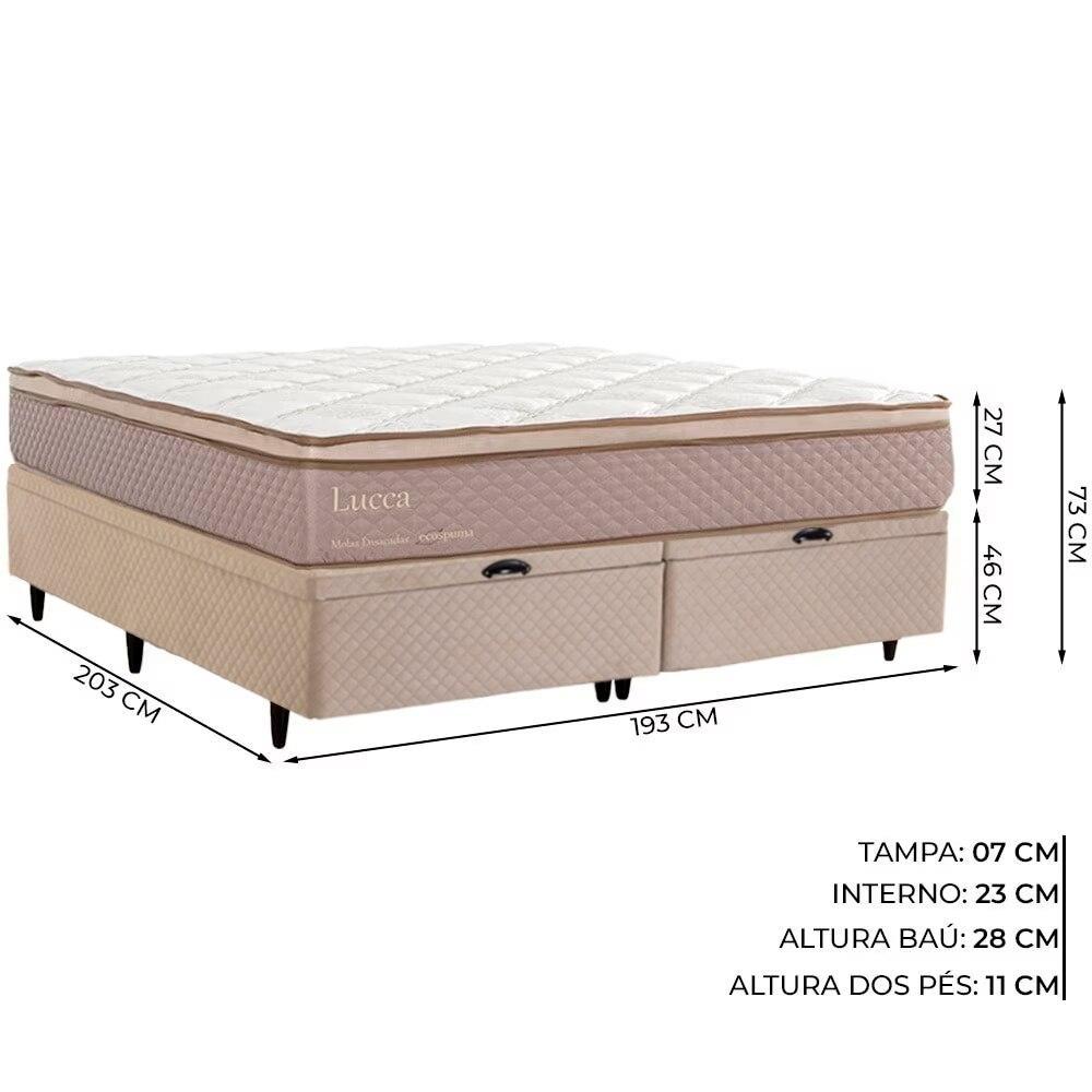 Cama Baú King Herval Lucca, Molas Ensacadas, Suede Bege, 73x193x203 cm