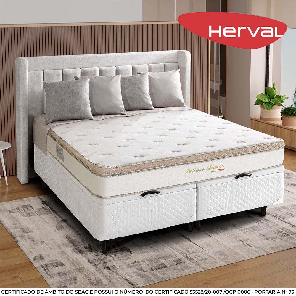 Cama Baú King Herval Pallace Bambu, Molas Ensacadas, 78x193x203 cm