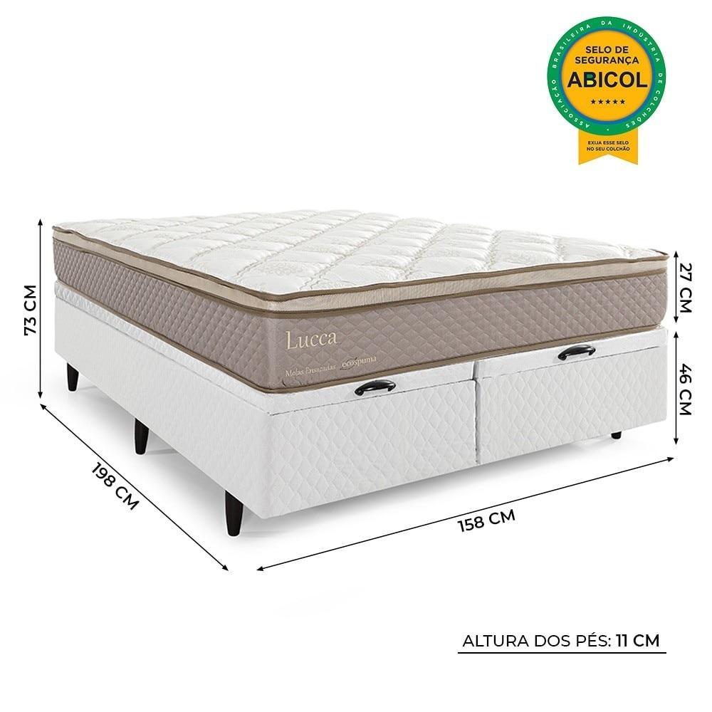 Cama Baú Queen Herval Lucca, Molas Ensacadas, 73x158x198 cm