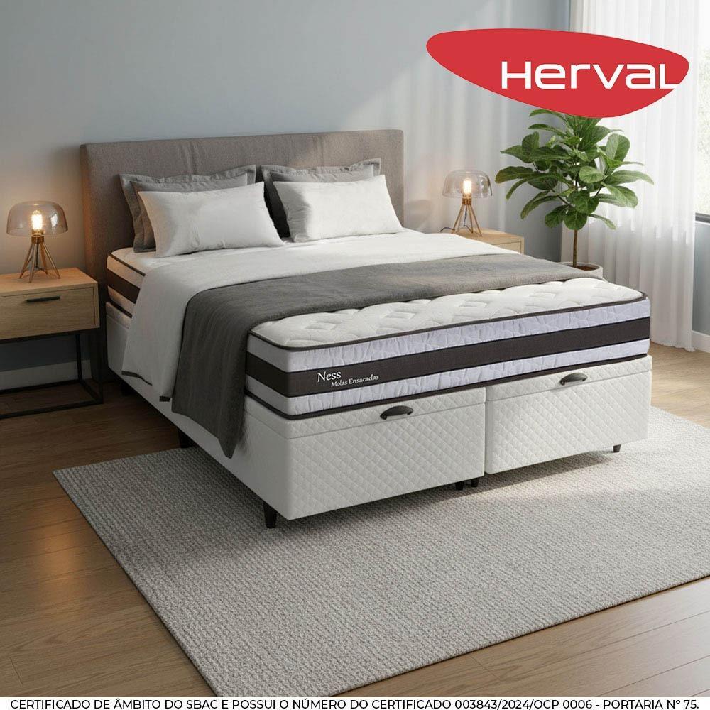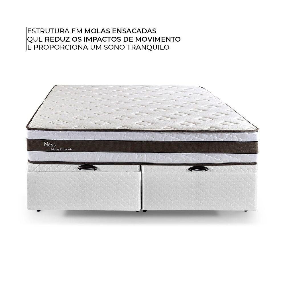 Cama Baú Queen Herval Ness, Molas Ensacadas, 72x158x198 cm