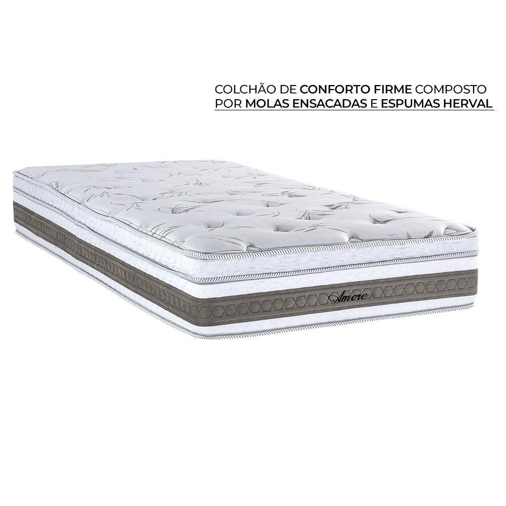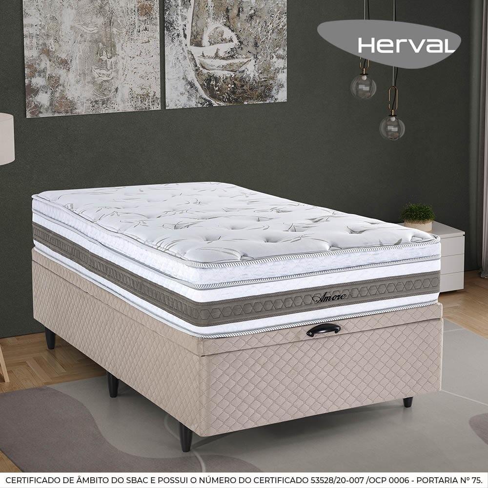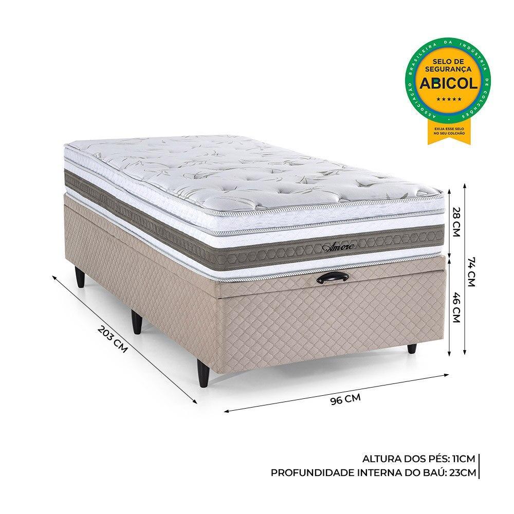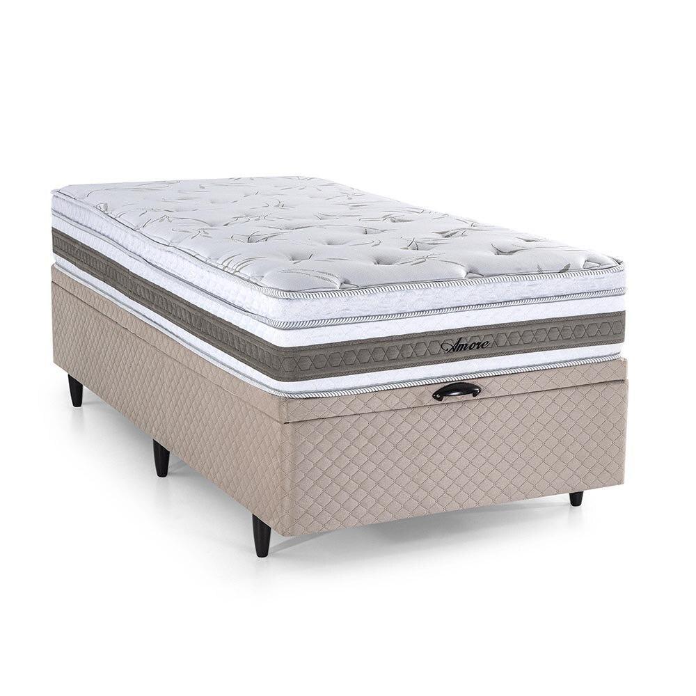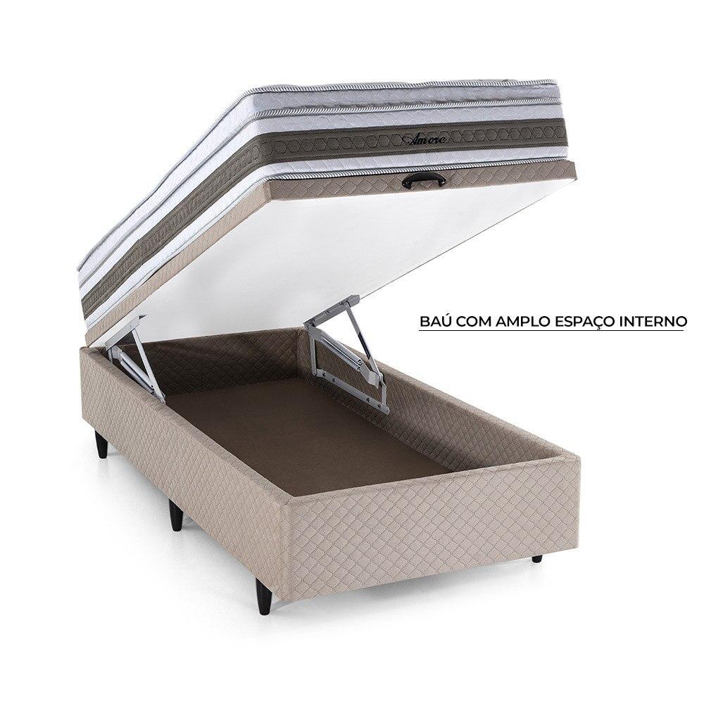 Cama Baú Solteirão Herval Amore de Molas Ensacadas, Suede Bege, 74x96x203 cm