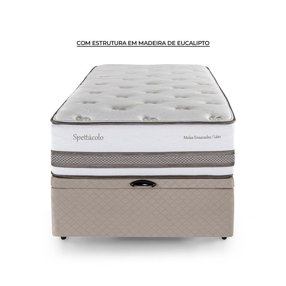 Cama Baú Solteirão Herval Spettácolo em Molas Ensacadas, Suede Bege, 81x96x203 cm