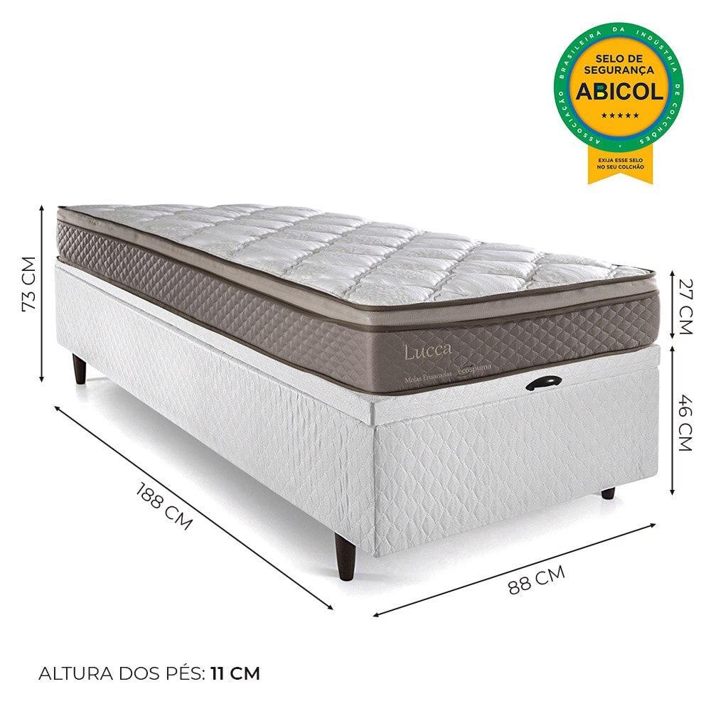 Cama Baú Solteiro Herval Lucca, Molas Ensacadas, 73x88x188 cm
