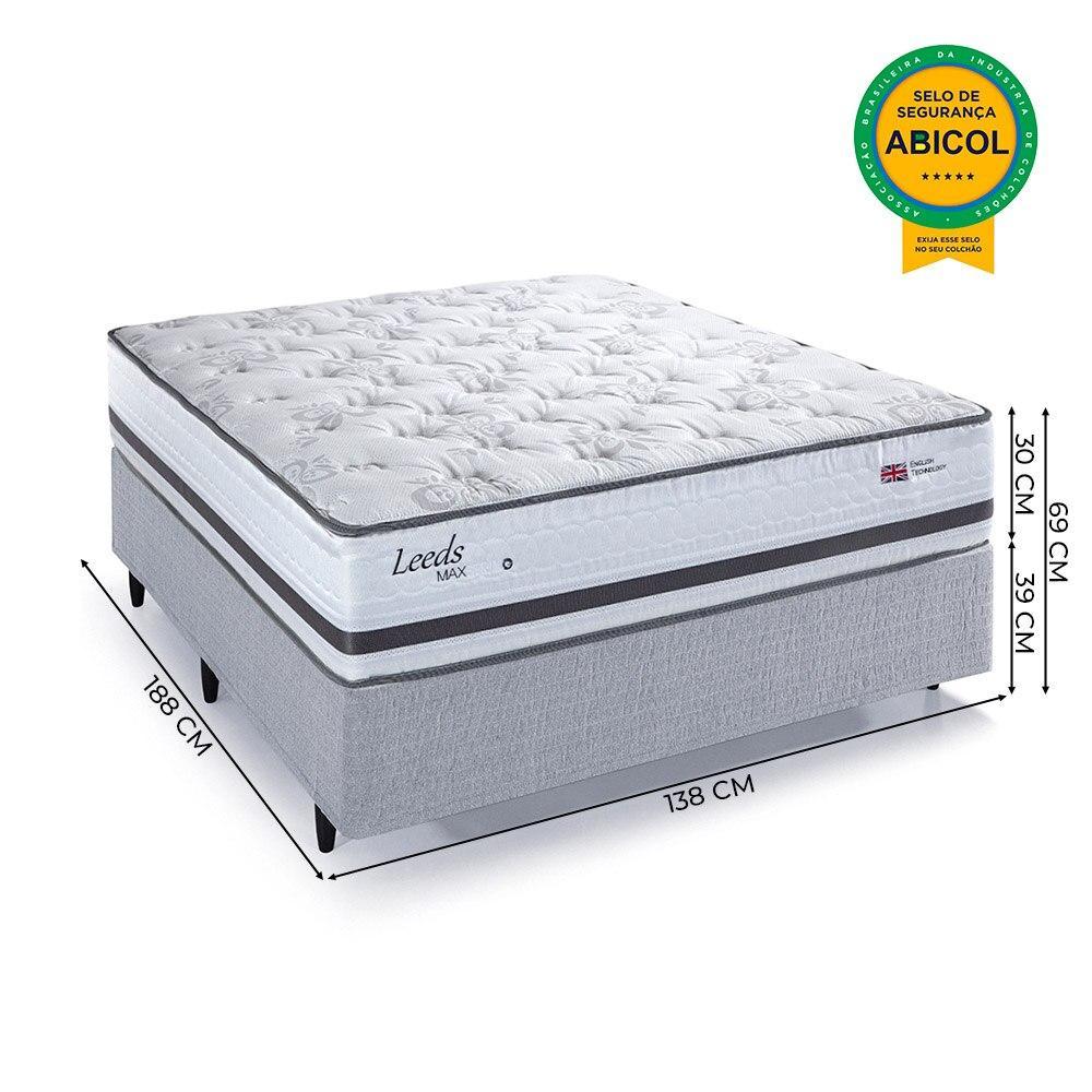 Cama Box Casal Desmontável Herval Leeds, Molas Maxspring, 69x138x188 cm