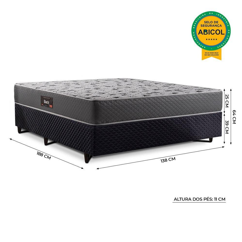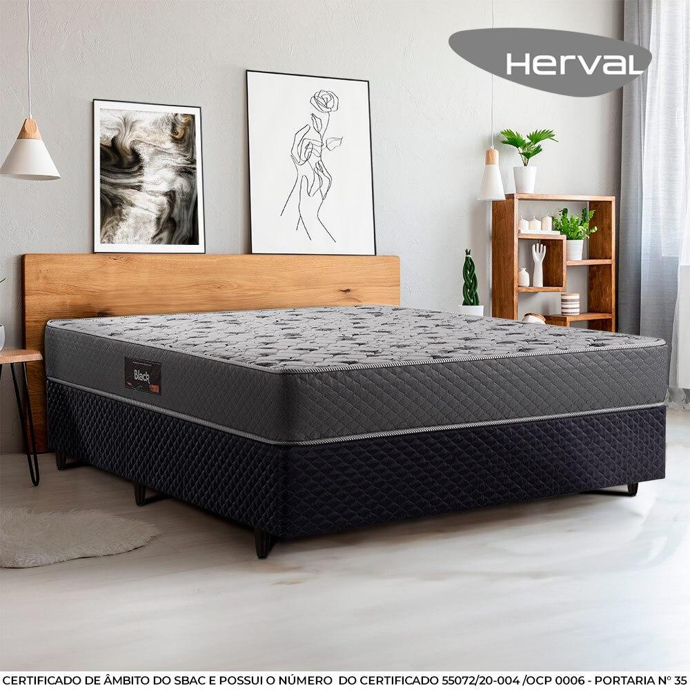 Cama Box Casal Herval Black com Espuma Alto Suporte, 64x138x188 cm