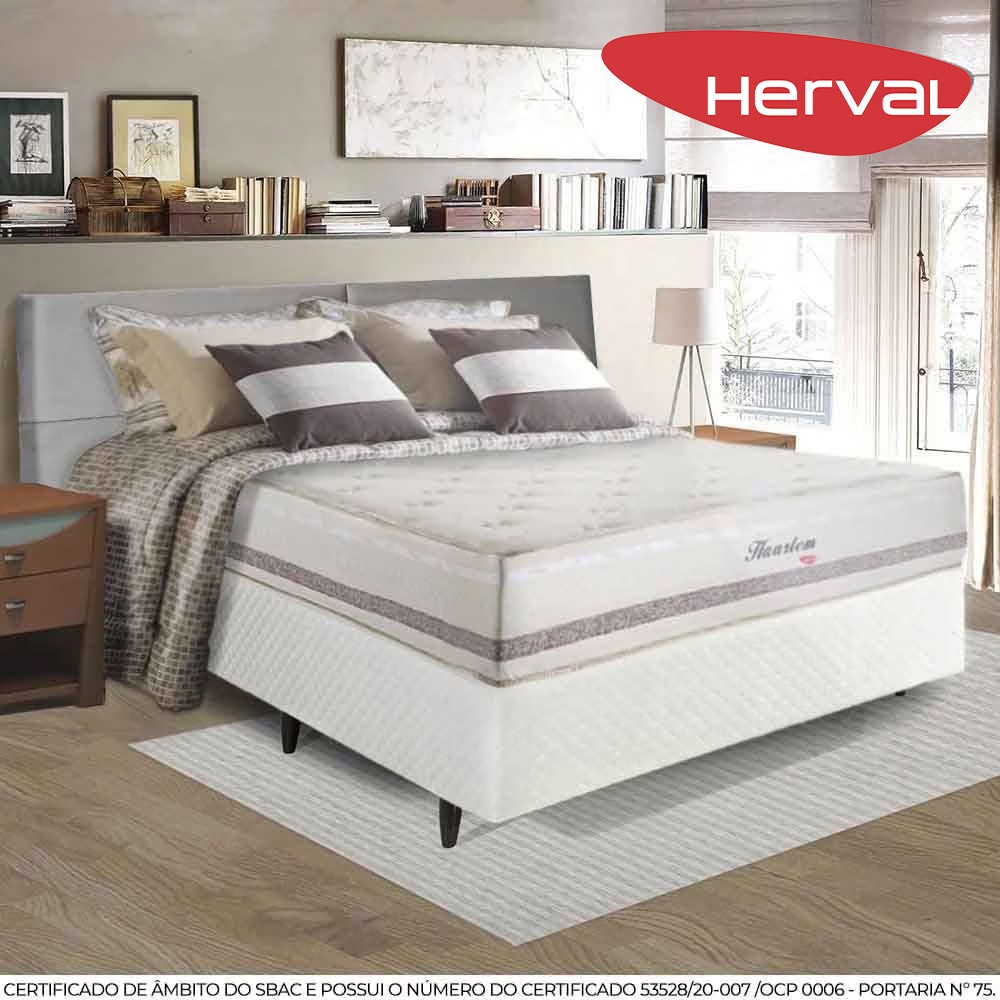 Cama Box Casal com Cabeceira Herval Haarlem de Molas Ensacadas, 69x138x188 cm