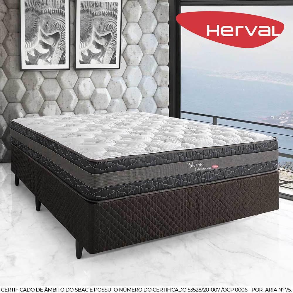 Cama Box Casal com Colchão Herval Palermo, Molas Ensacadas, 67x138x188 cm