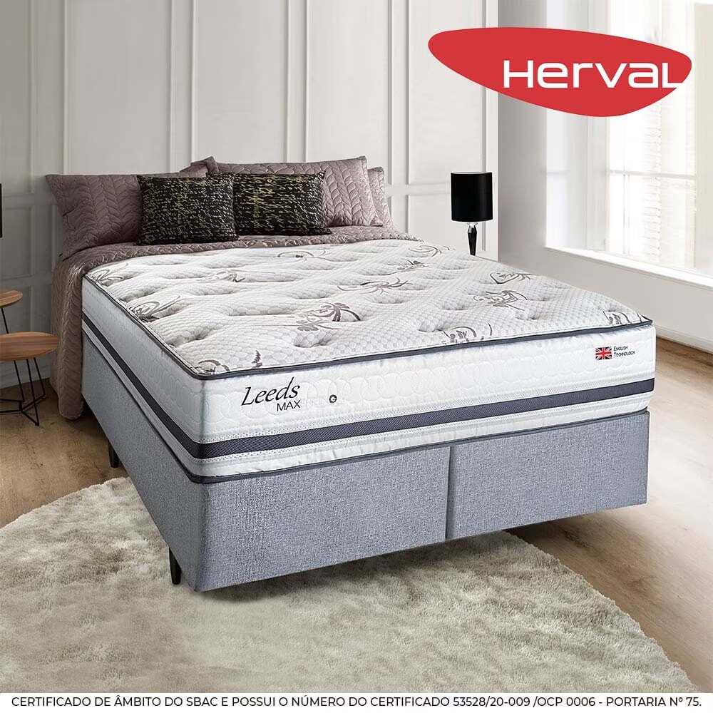 Cama Box Queen Size Herval Leeds, Molas Maxspring, 69x158x198 cm