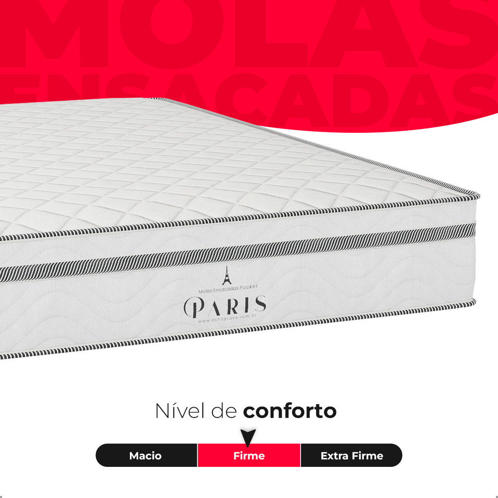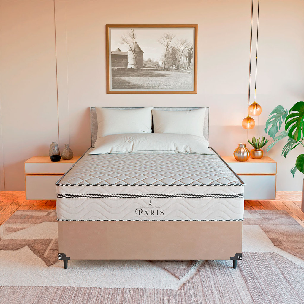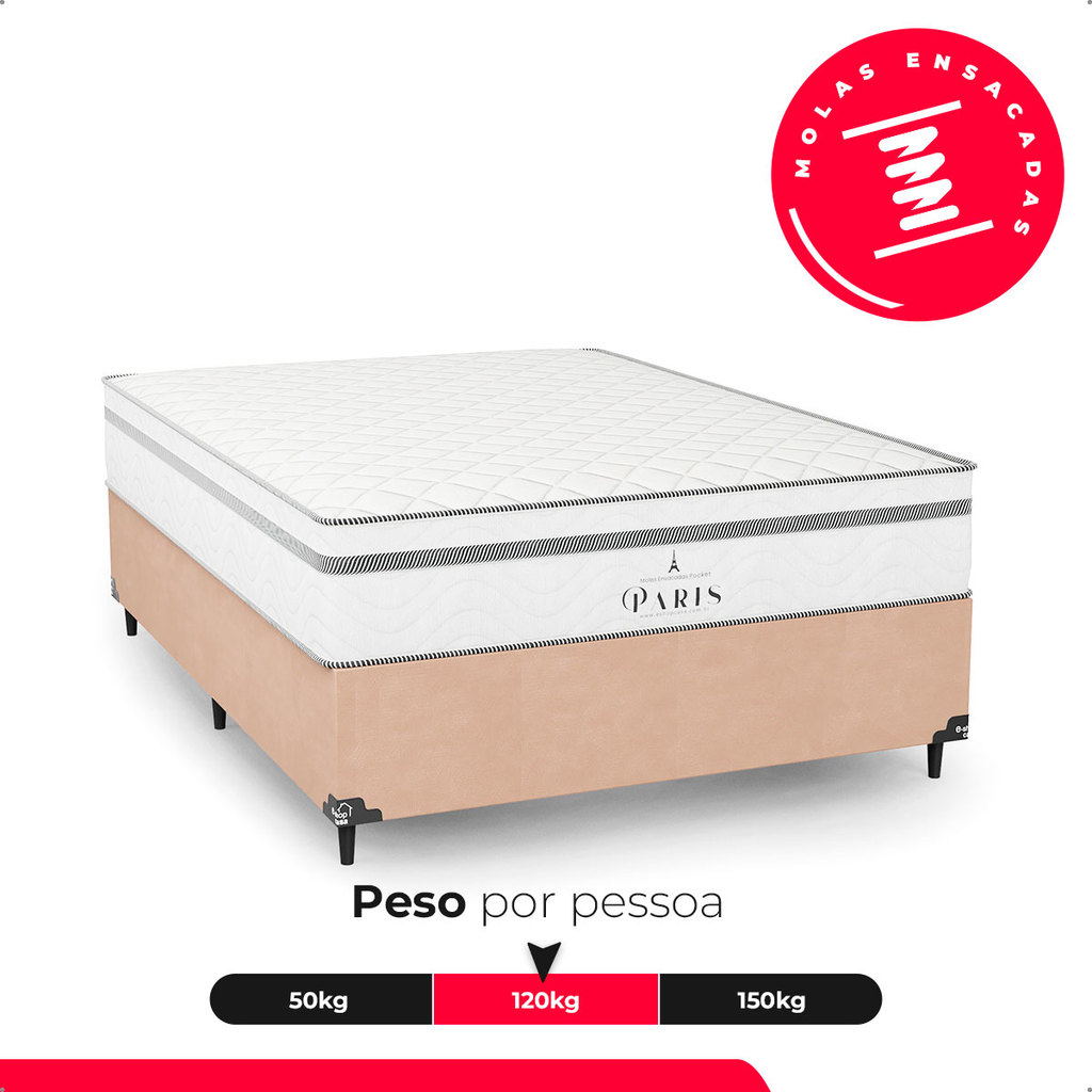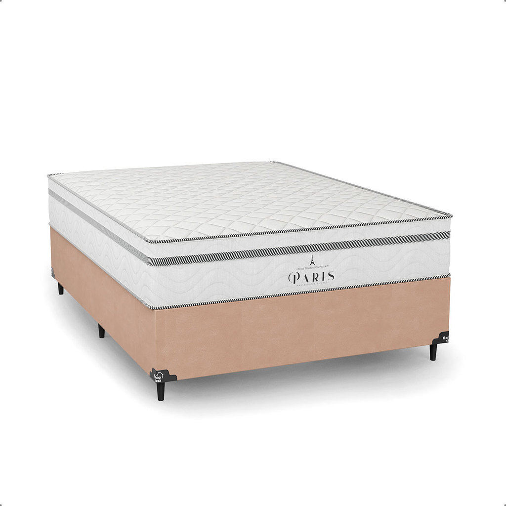 Cama Box Viúva Bege + Colchão Paris Molas Ensacadas Branco