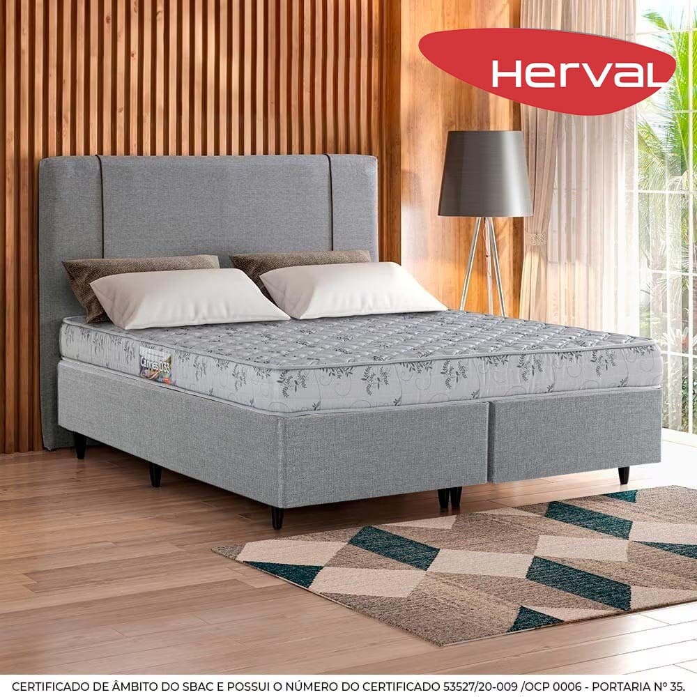 Cama Box com Cabeceira Queen Herval Cannes, Espuma D33, 56x158x198 cm