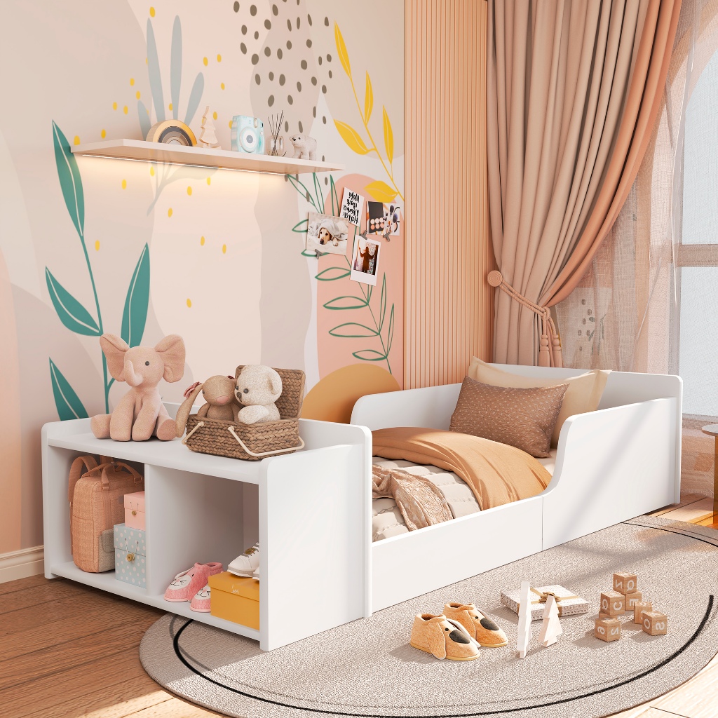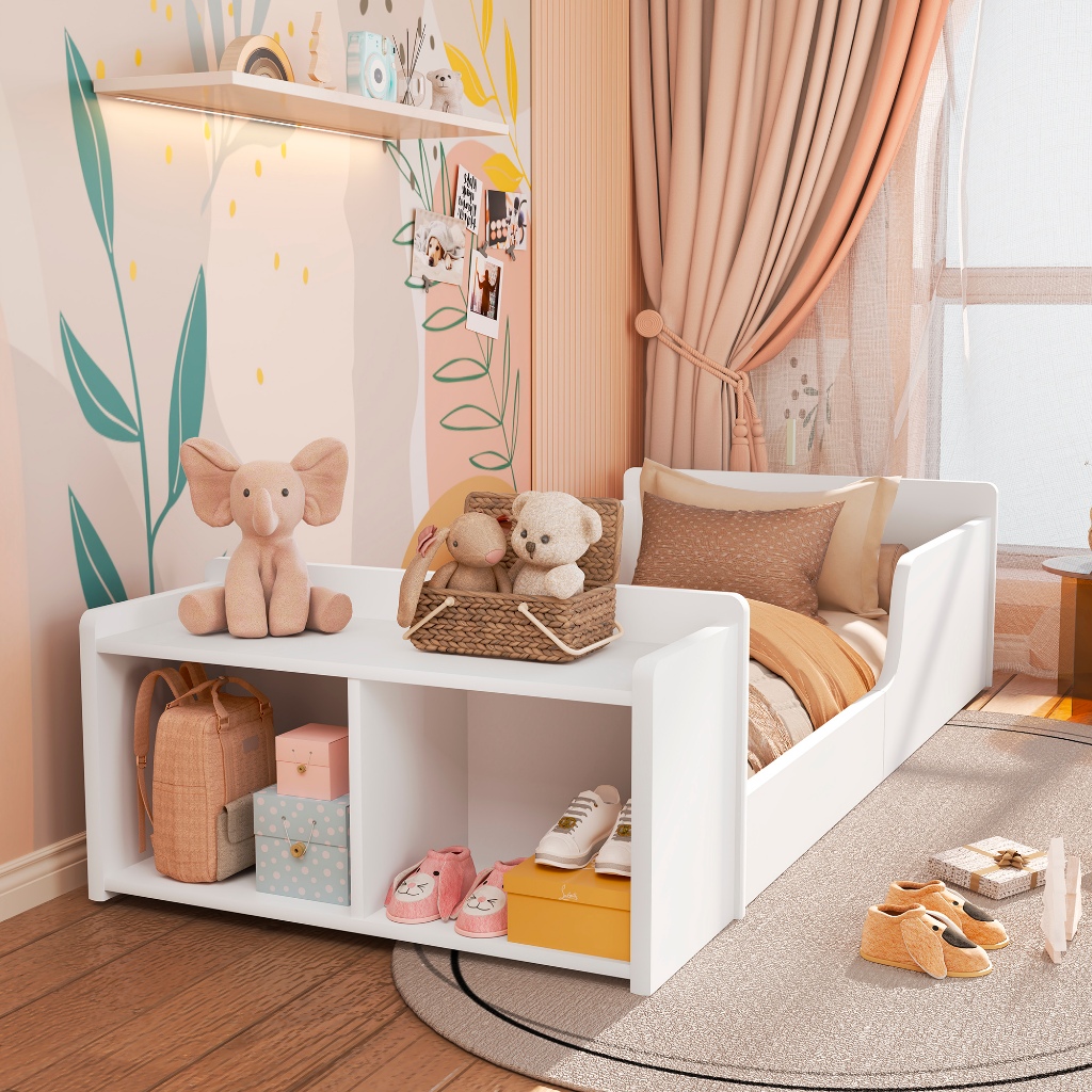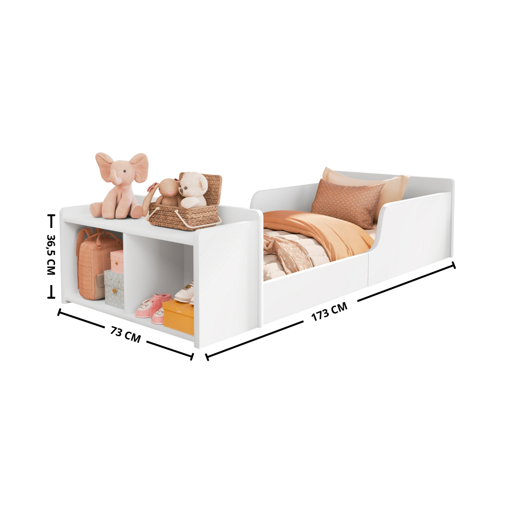 Cama Infantil Com Nicho Organizador Para Brinquedos e Sapateira Baixa Montessoriana Quarto Criança