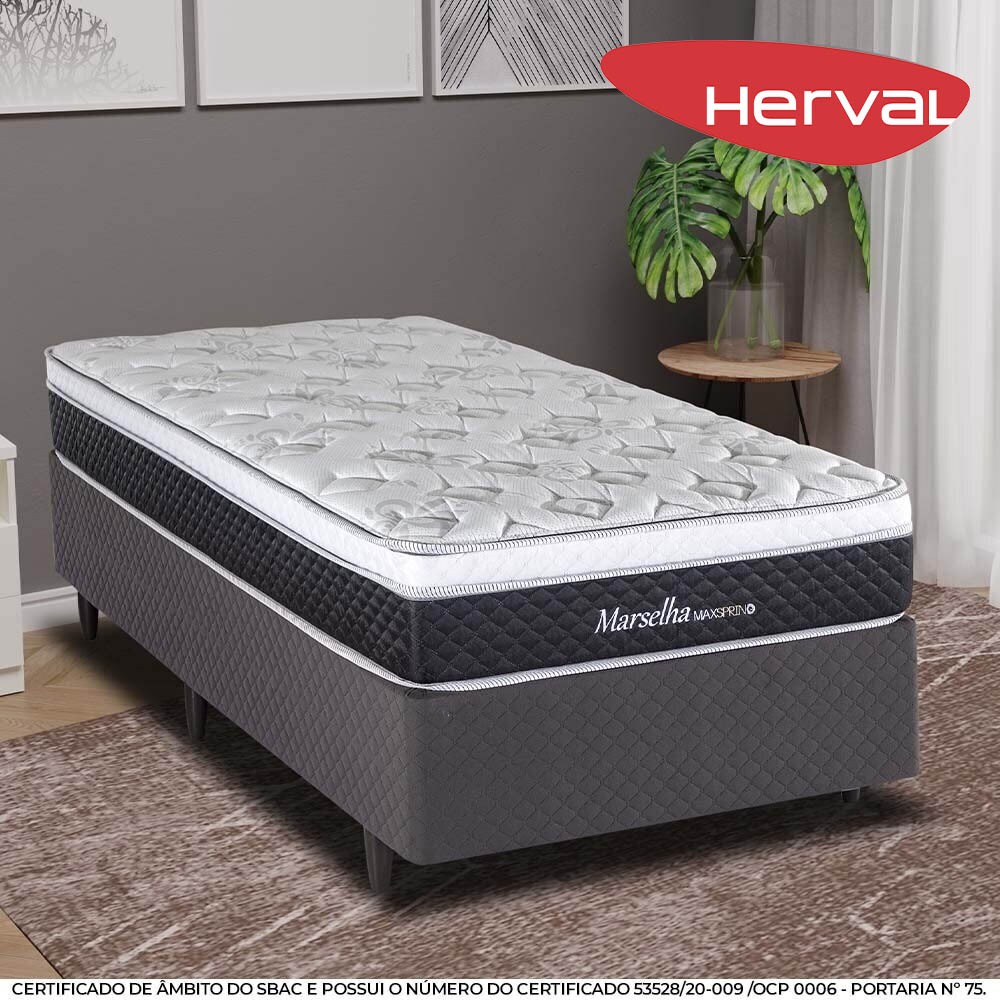 Cama Solteirão Herval Marselha, Molas Maxspring, 64x96x203 cm