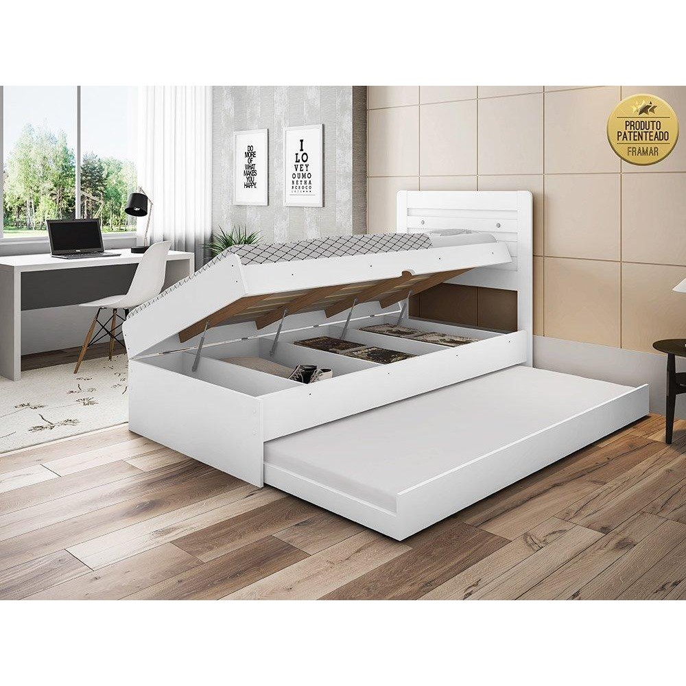 Cama Solteiro Larissa com Auxiliar Branca Framar