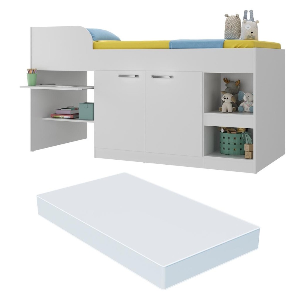 Cama Solteiro Multifuncional com Colchão Incluso 2 Portas e Escrivaninha Multimóveis MP4233 Branco