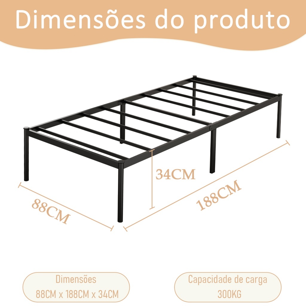Cama de Solteiro e Casal Estrado de Metal Dobrável, Fácil de Montagem, Ripas de Aço Antiderrapante
