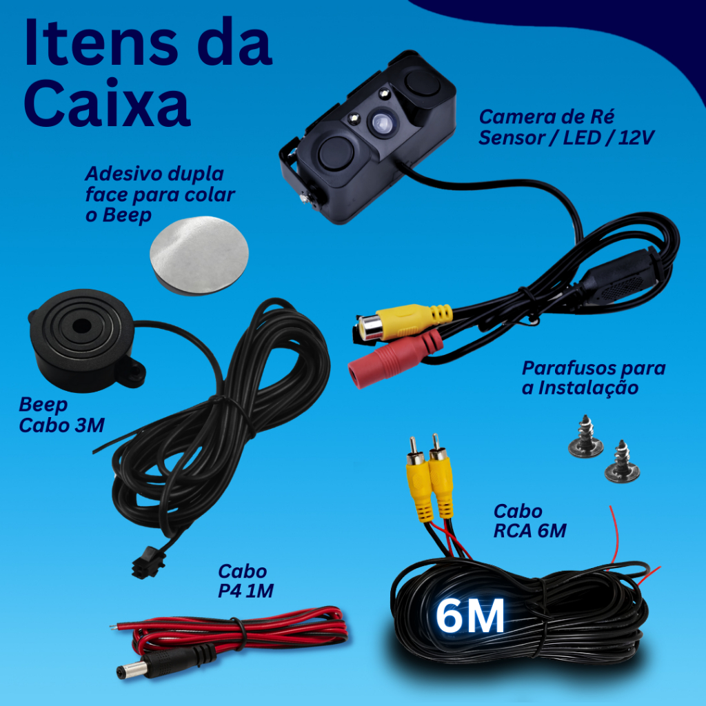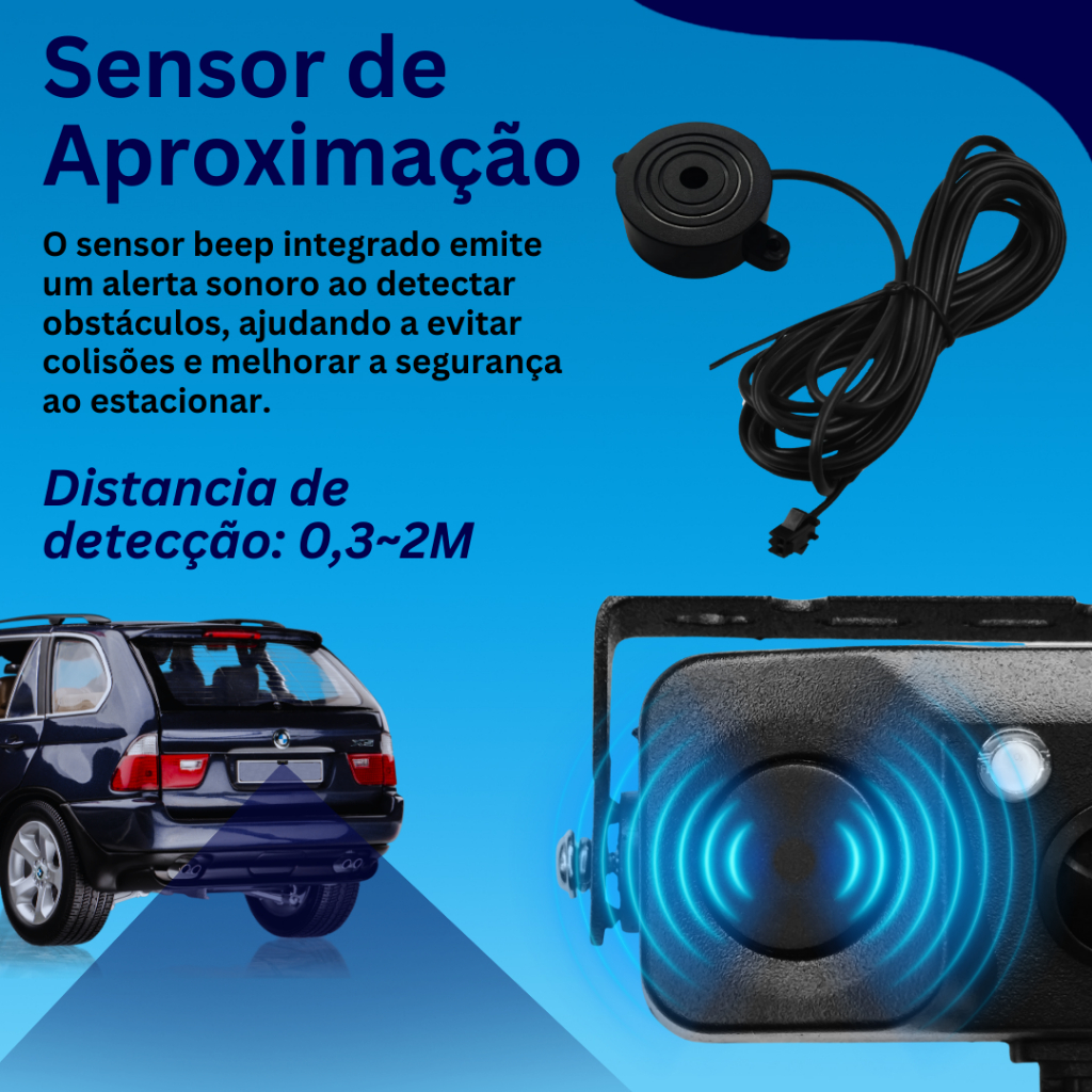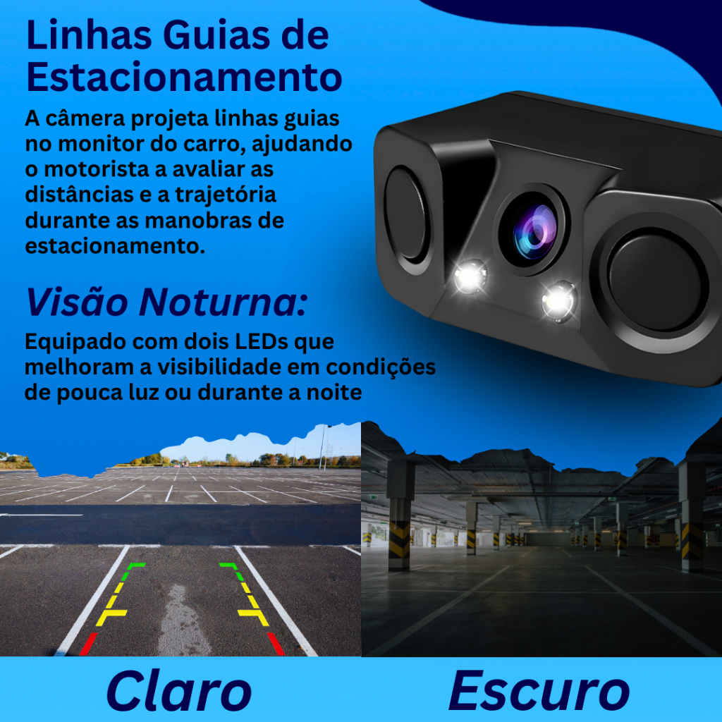 Camera De Re Com Sensor de Estacionamento com LED
