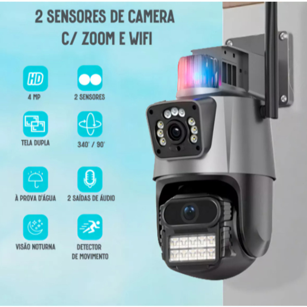 Camera Segurança Externa Lente Dupla 4k 6mp Sirene Policial, com sirene policia