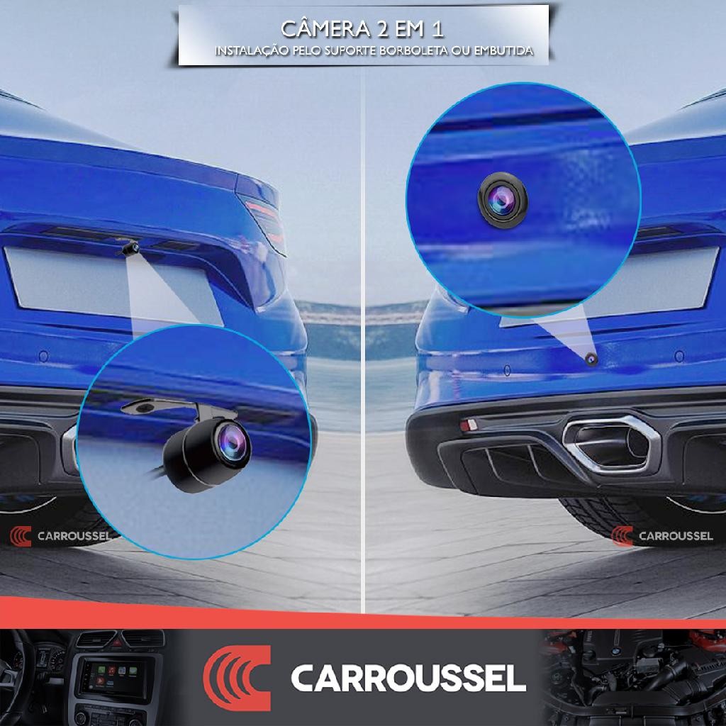 Camera de Ré Para Multimidia Universal Traseira Embutida e Borboleta com Linhas Guia Fixas
